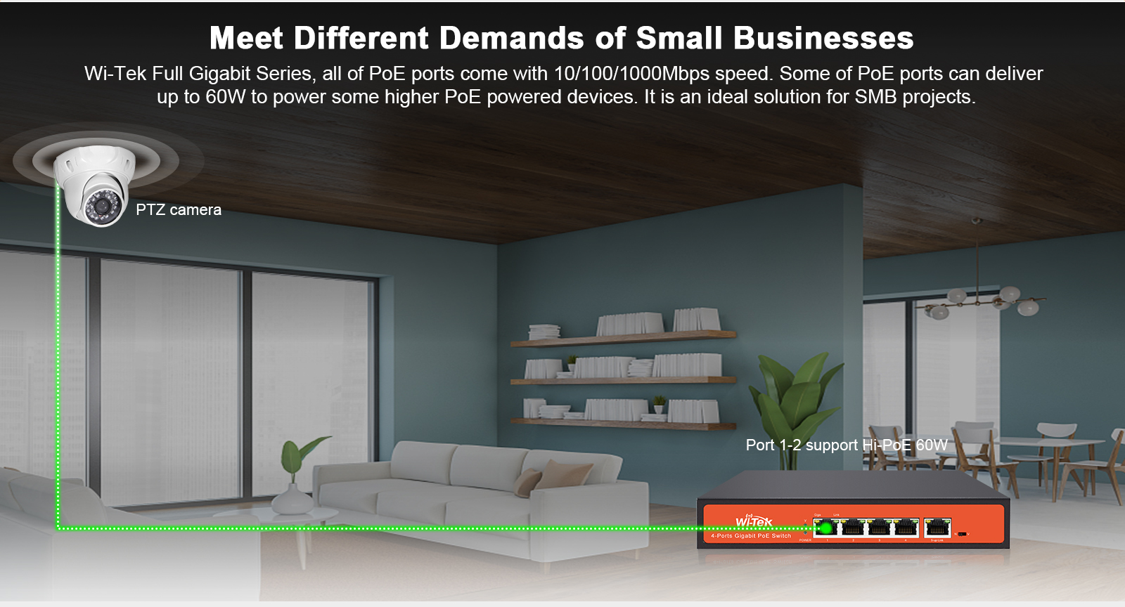 ● 4 10/100/1000Mbps RJ45 PoE Ports
