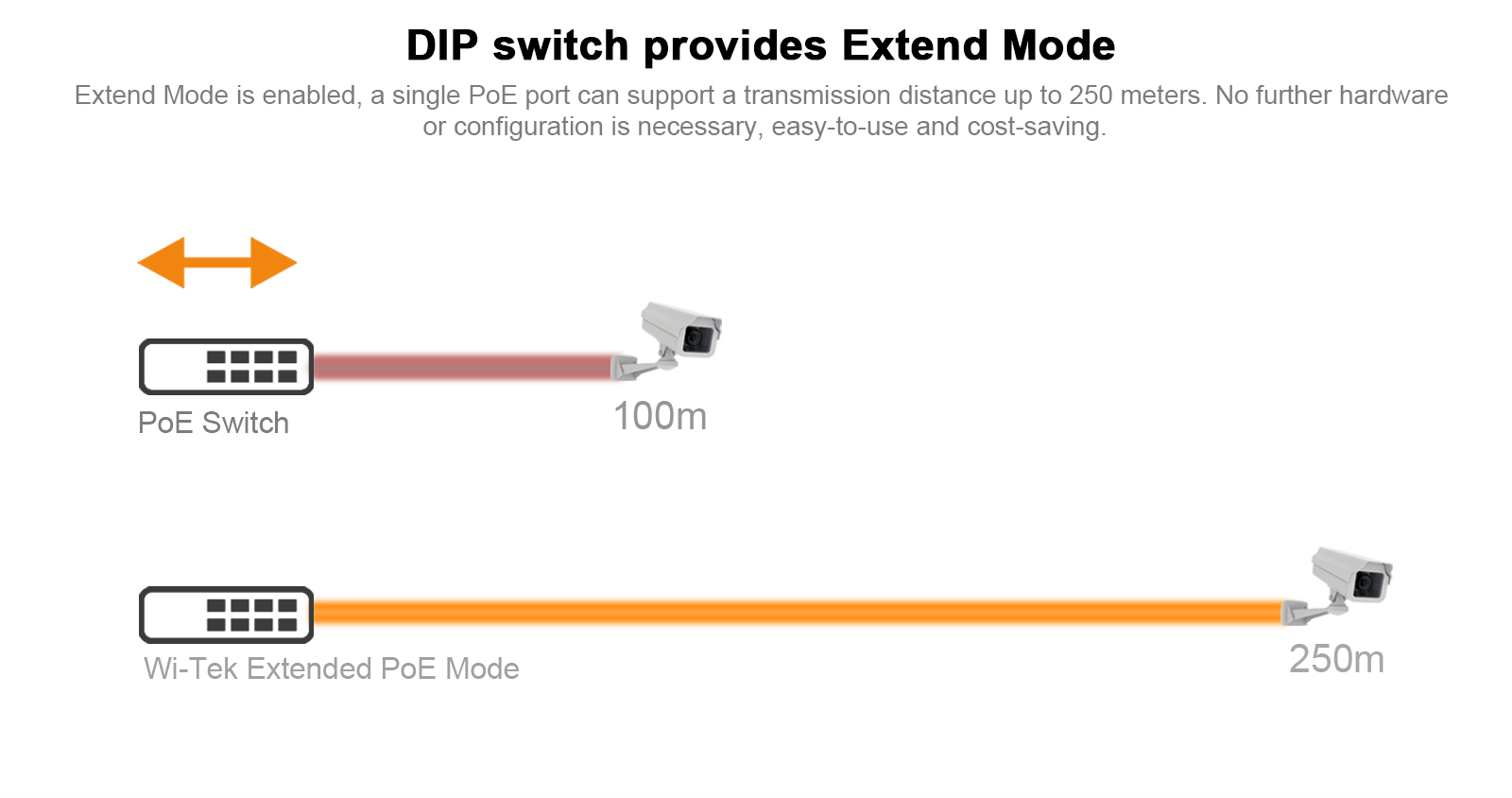 ● Smart DIP Switch: 250m Extend mode, Port VLAN mode