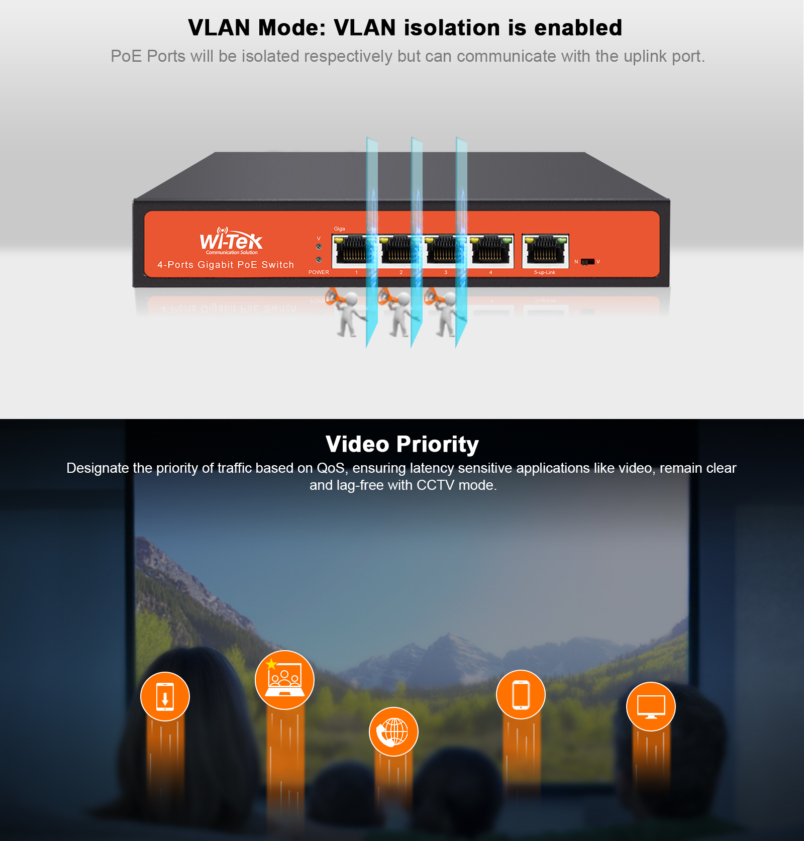● 4 10/100/1000MbpsRJ45 PoE Ports