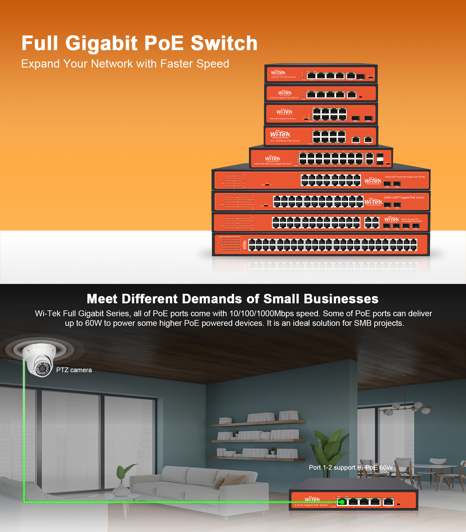 ● 16 10/100/1000Mbps RJ45 PoE Ports