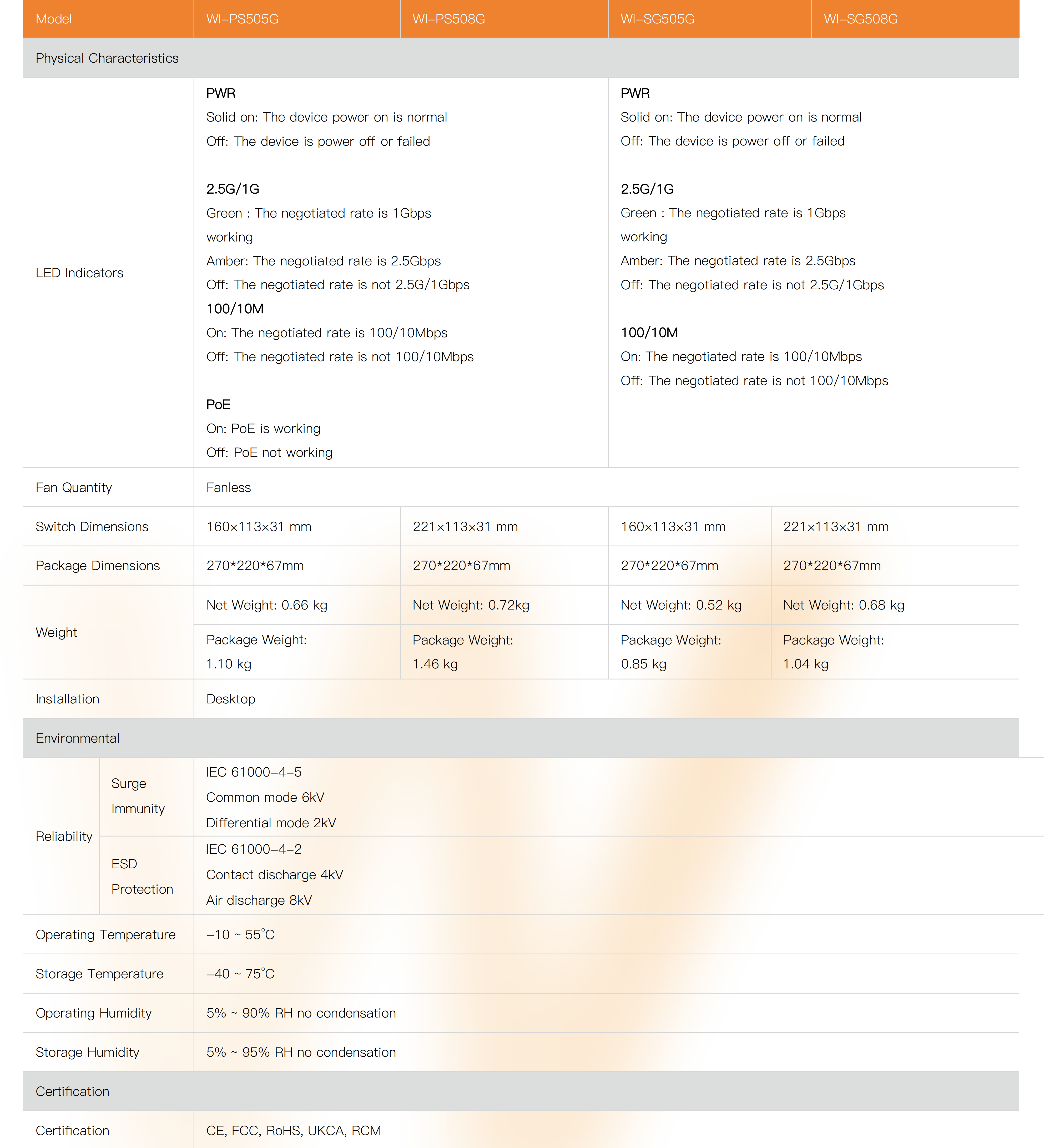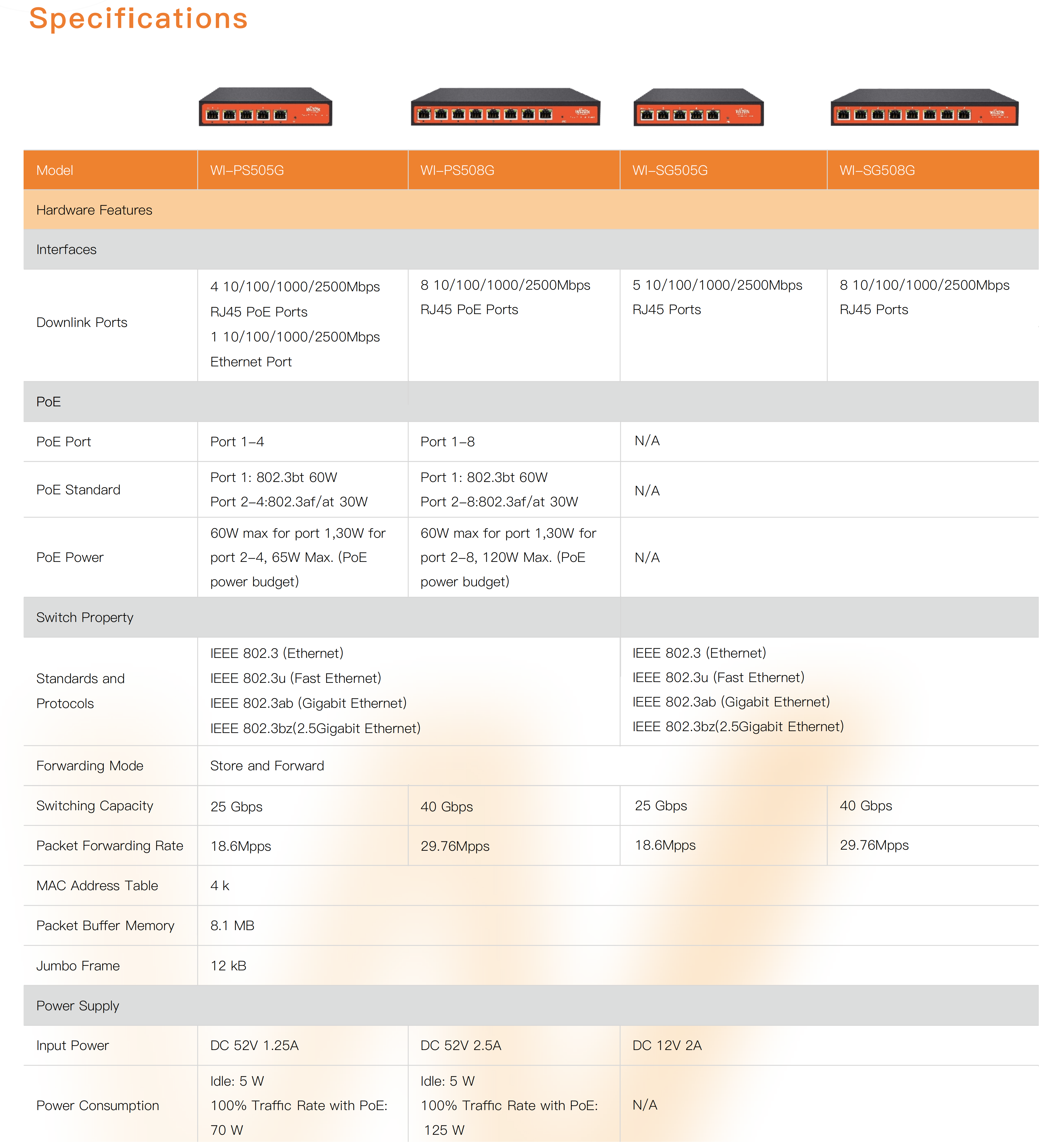 ● 4 100/1000/2500Mbps RJ45 PoE Ports