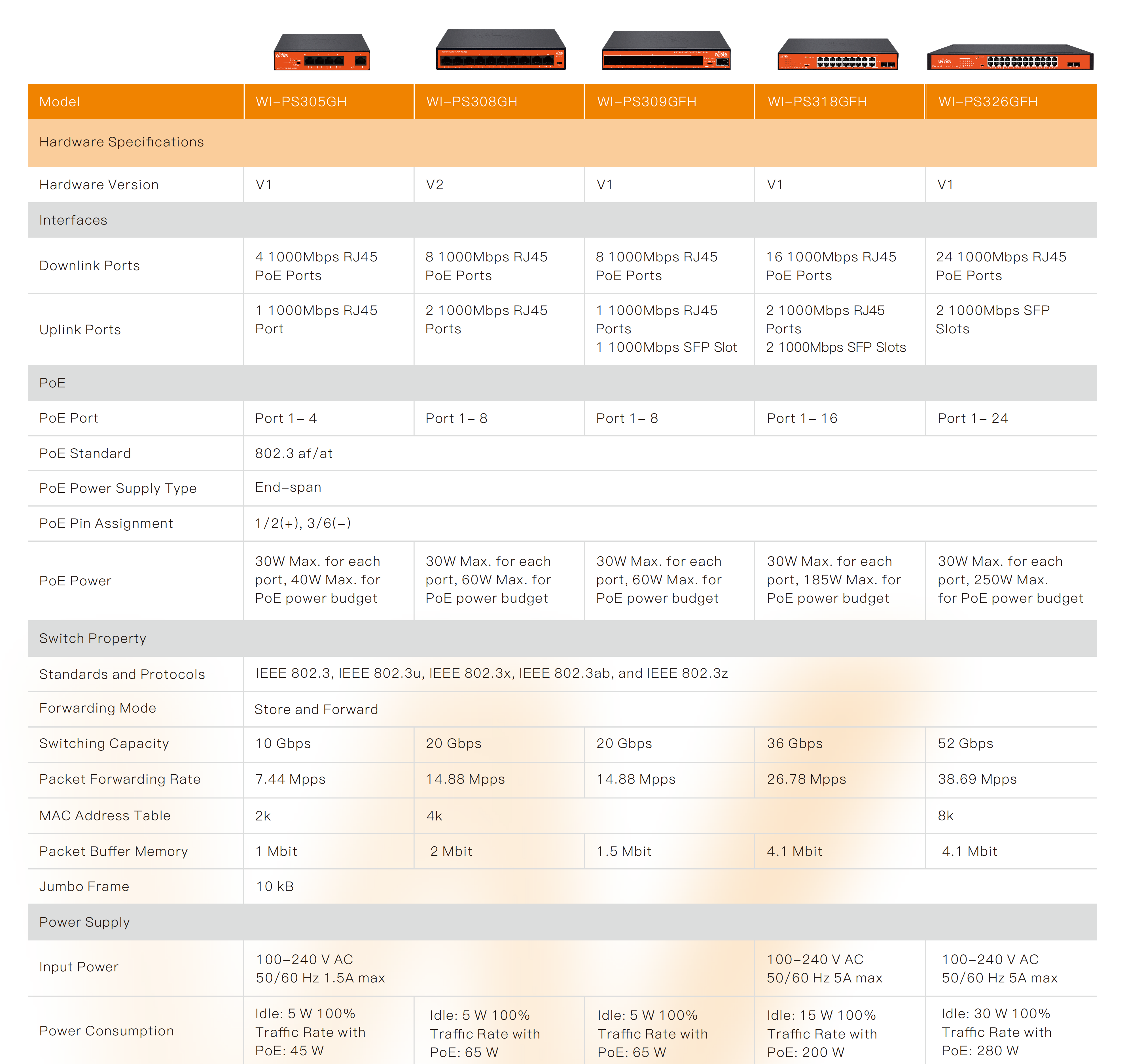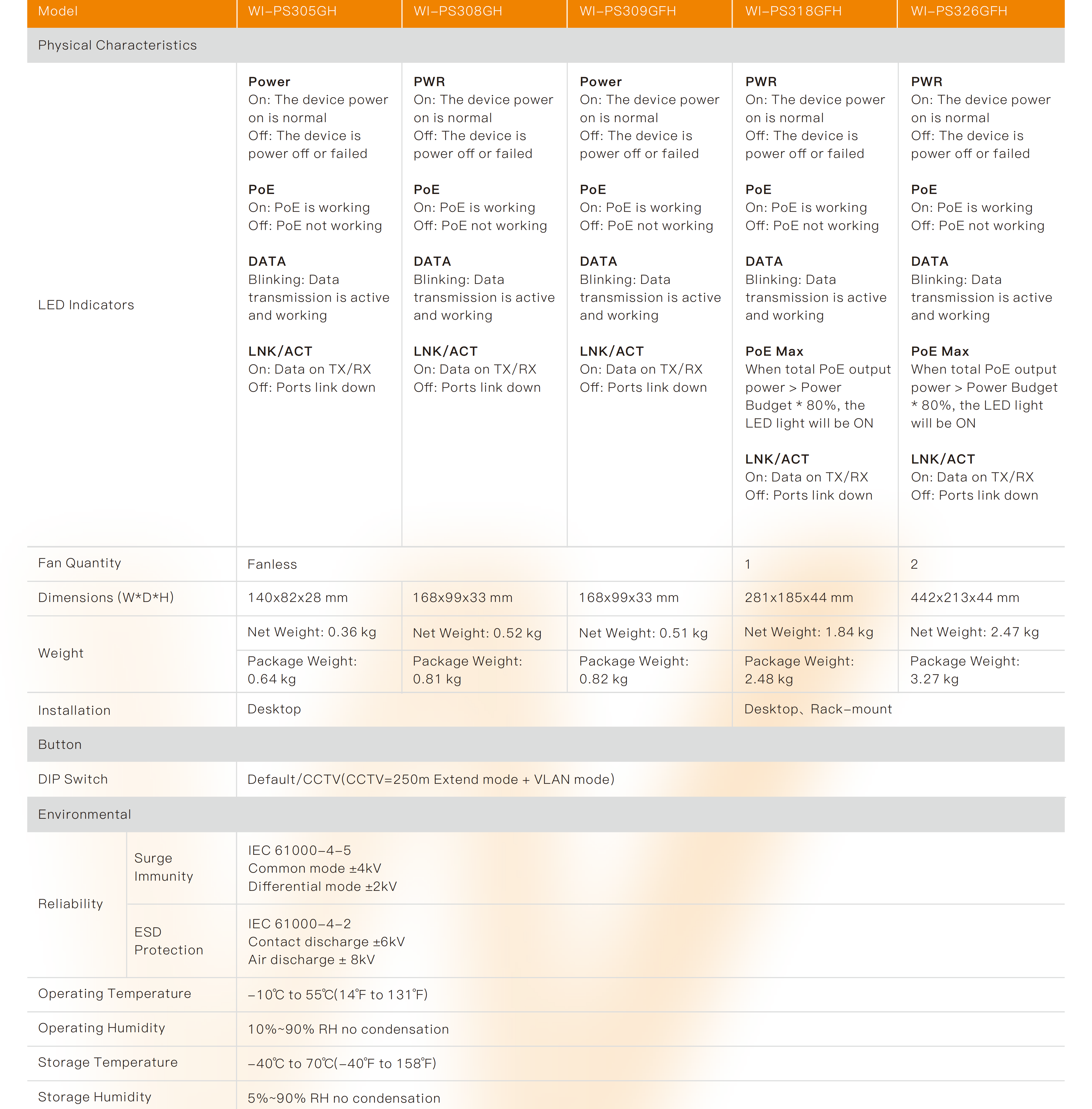 ● Each port supports IEEE 802.3af/at 30W PoE