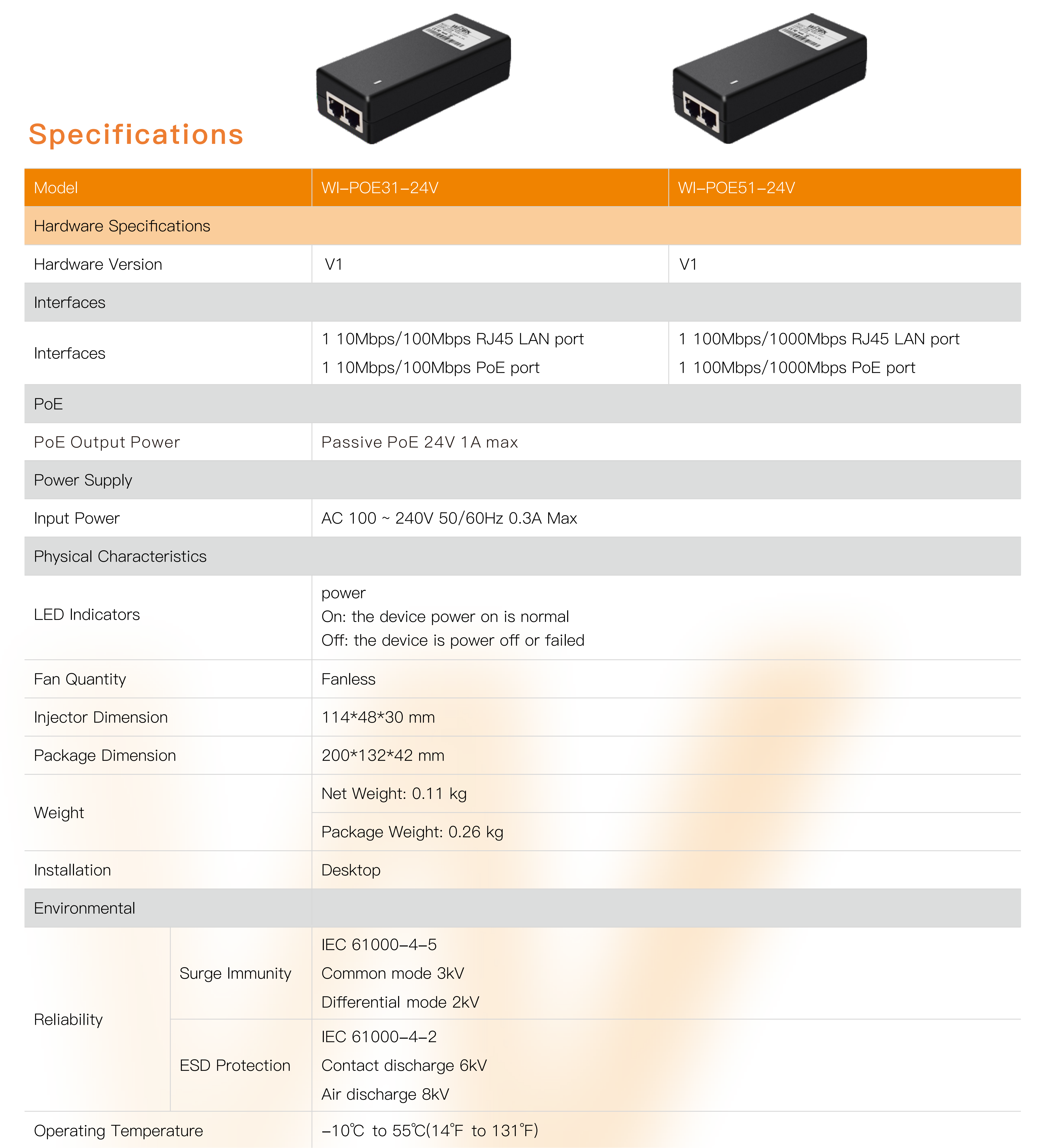 Home < Products < Accessories < PoE Injector < WI-POE31-24V