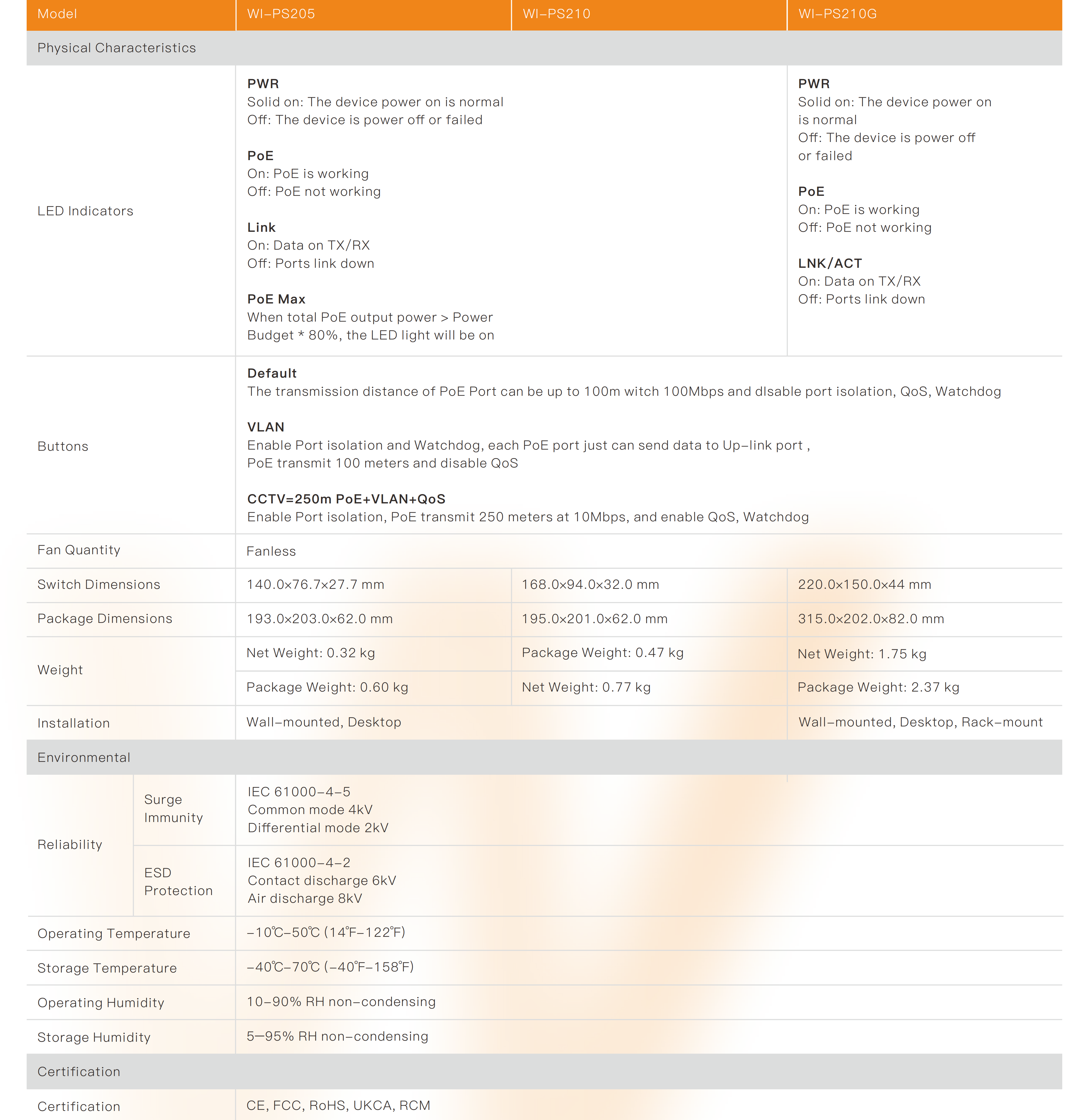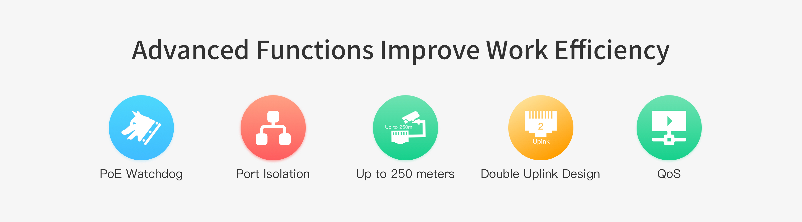 ● Smart DIP Switch: 250m Extend mode, Port VLAN mode, CCTV mode