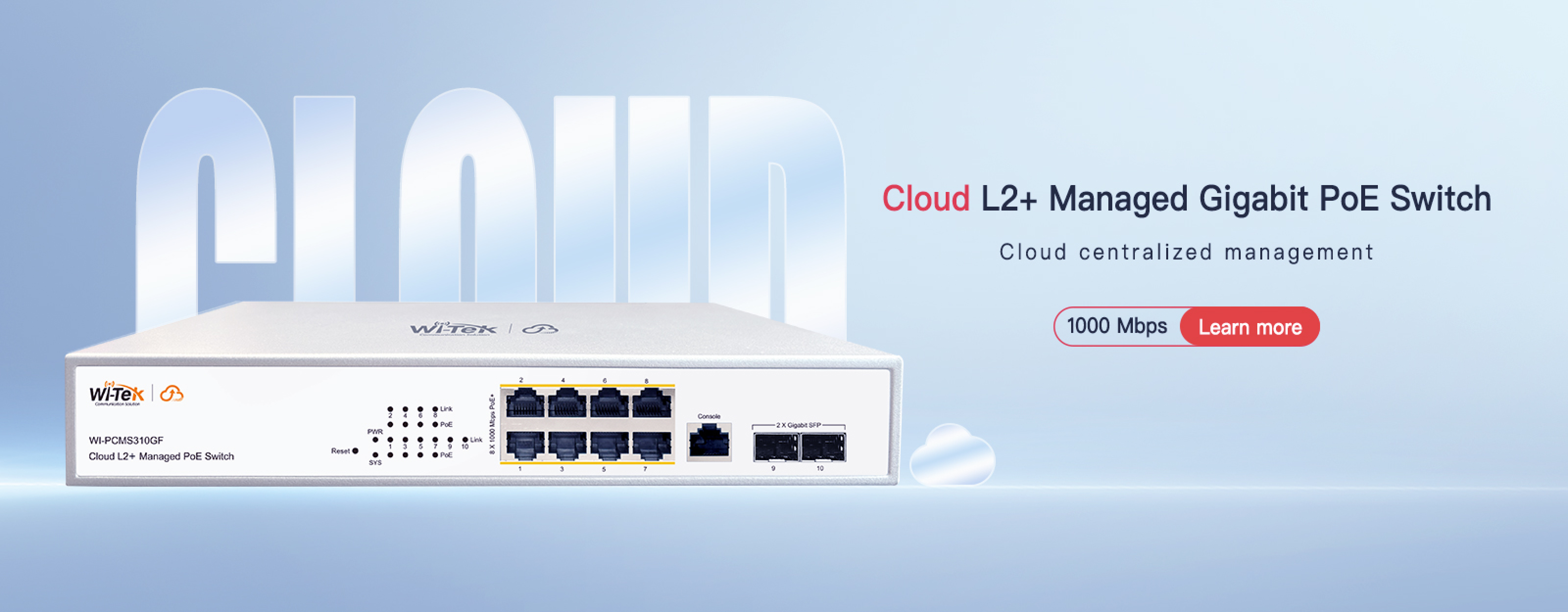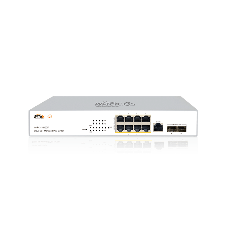 ● 8 Gigabit PoE+ RJ-45 ports and 2 Gigabit SFP slots