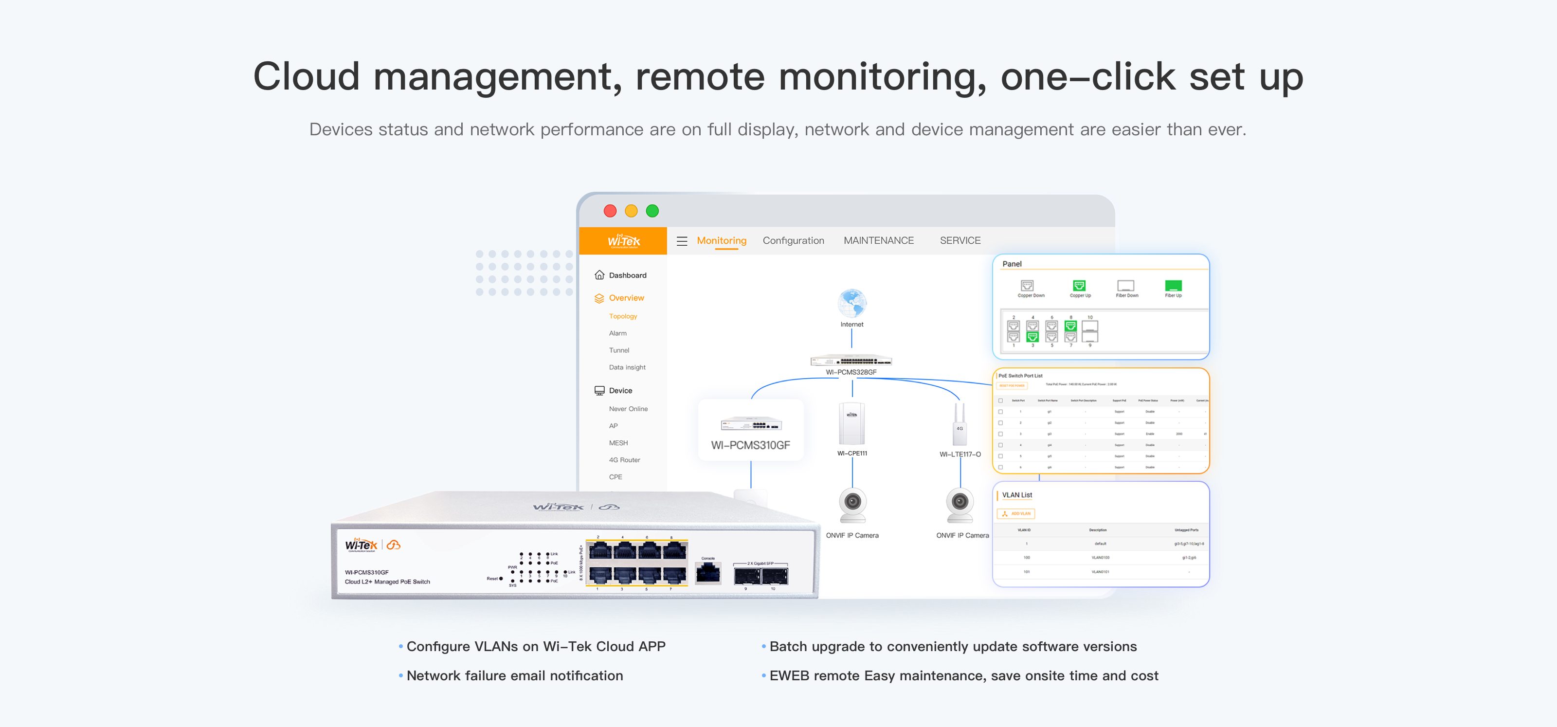 ● Support cloud management, easy to maintain and manage