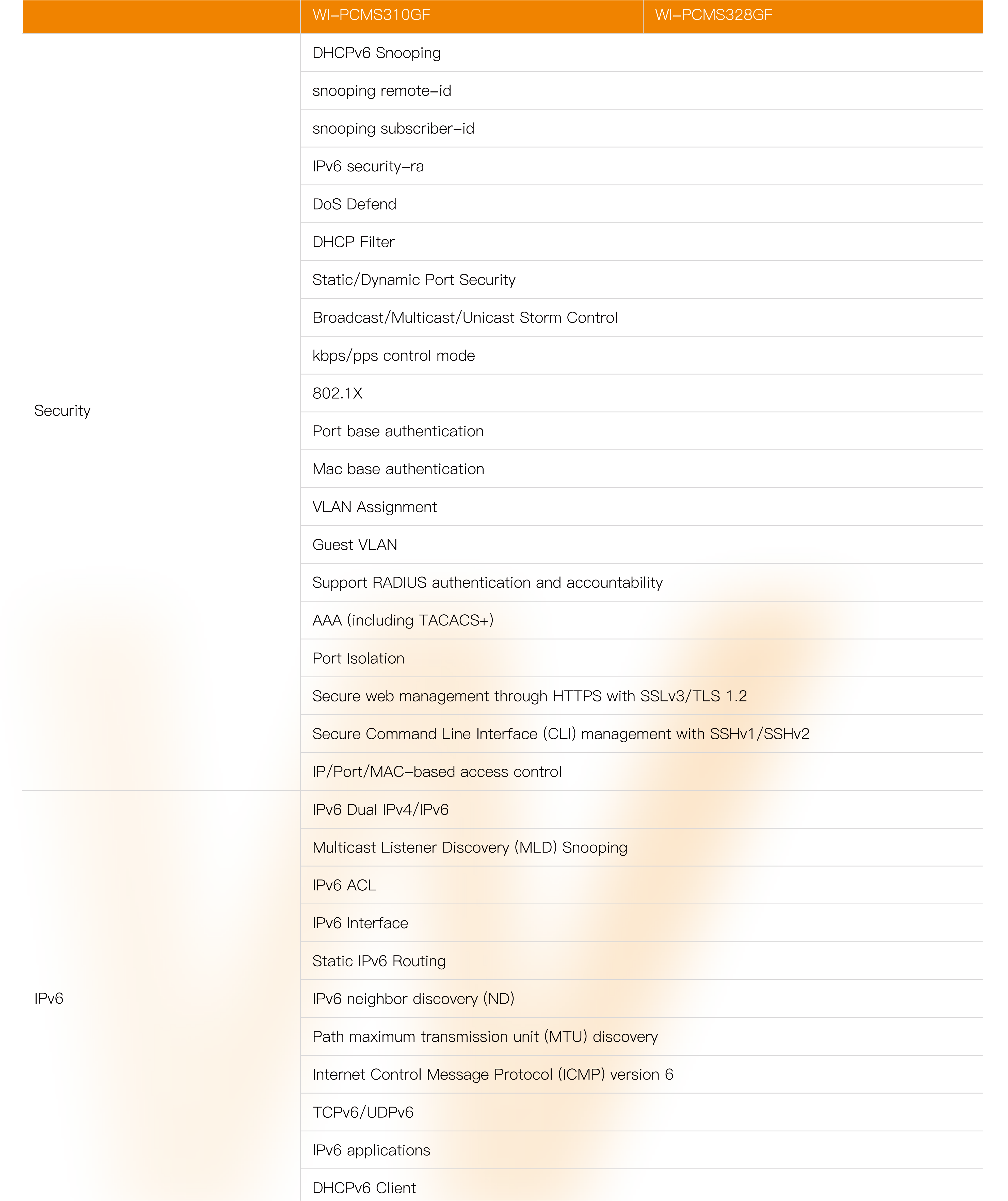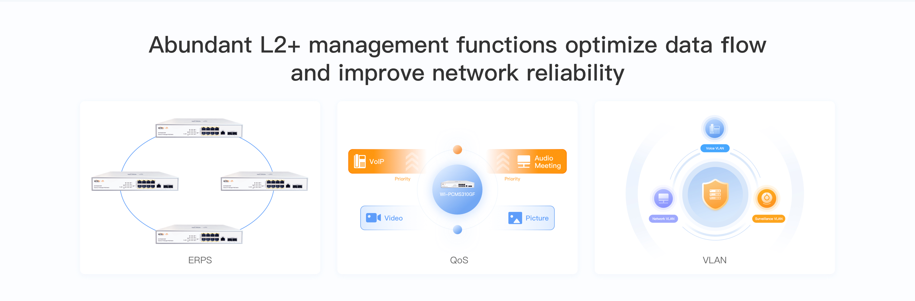 ● Supports Web, CLI (Console Port, Telnet, SSH), SNMP and RMON to bring powerful management capabilities