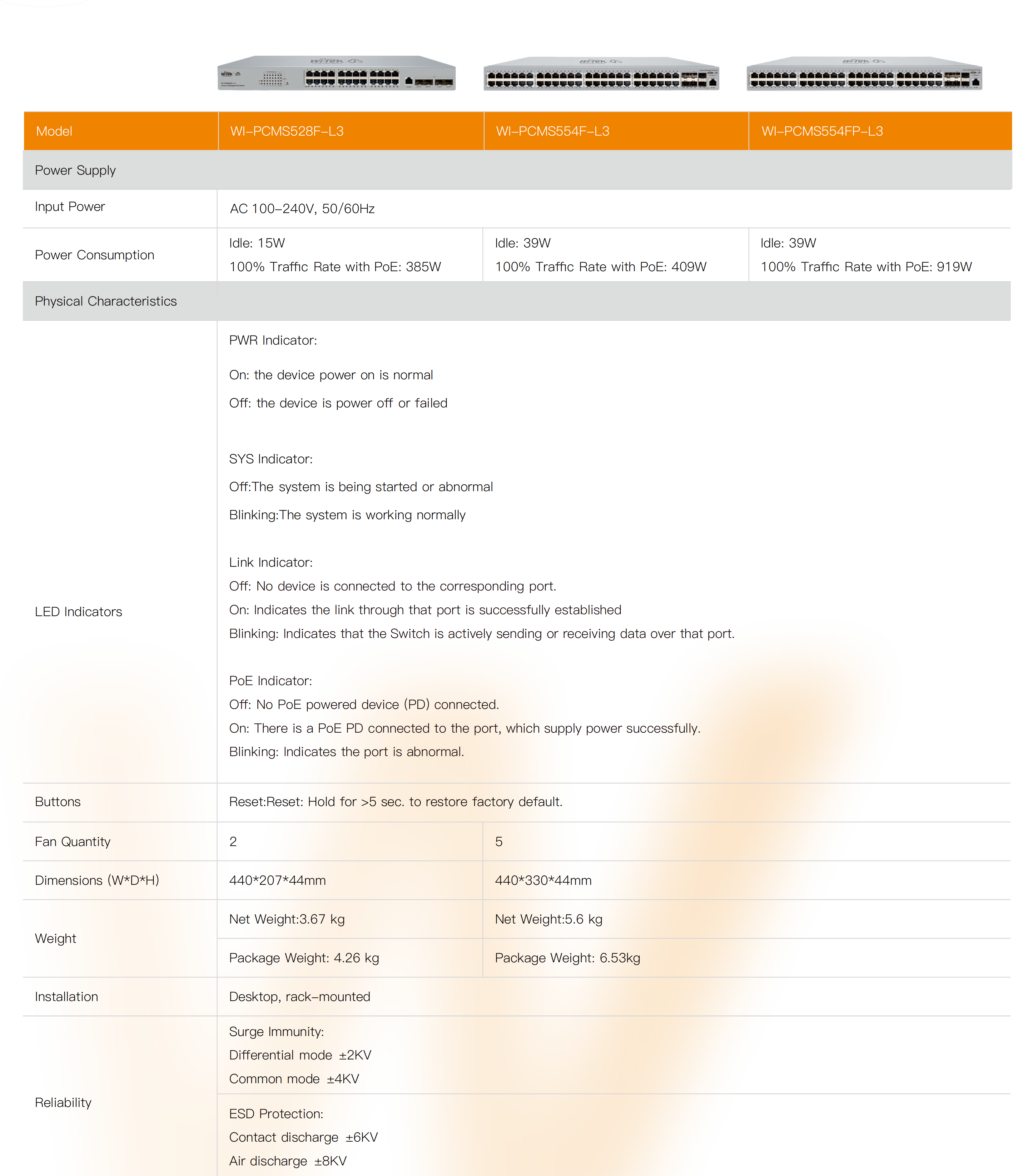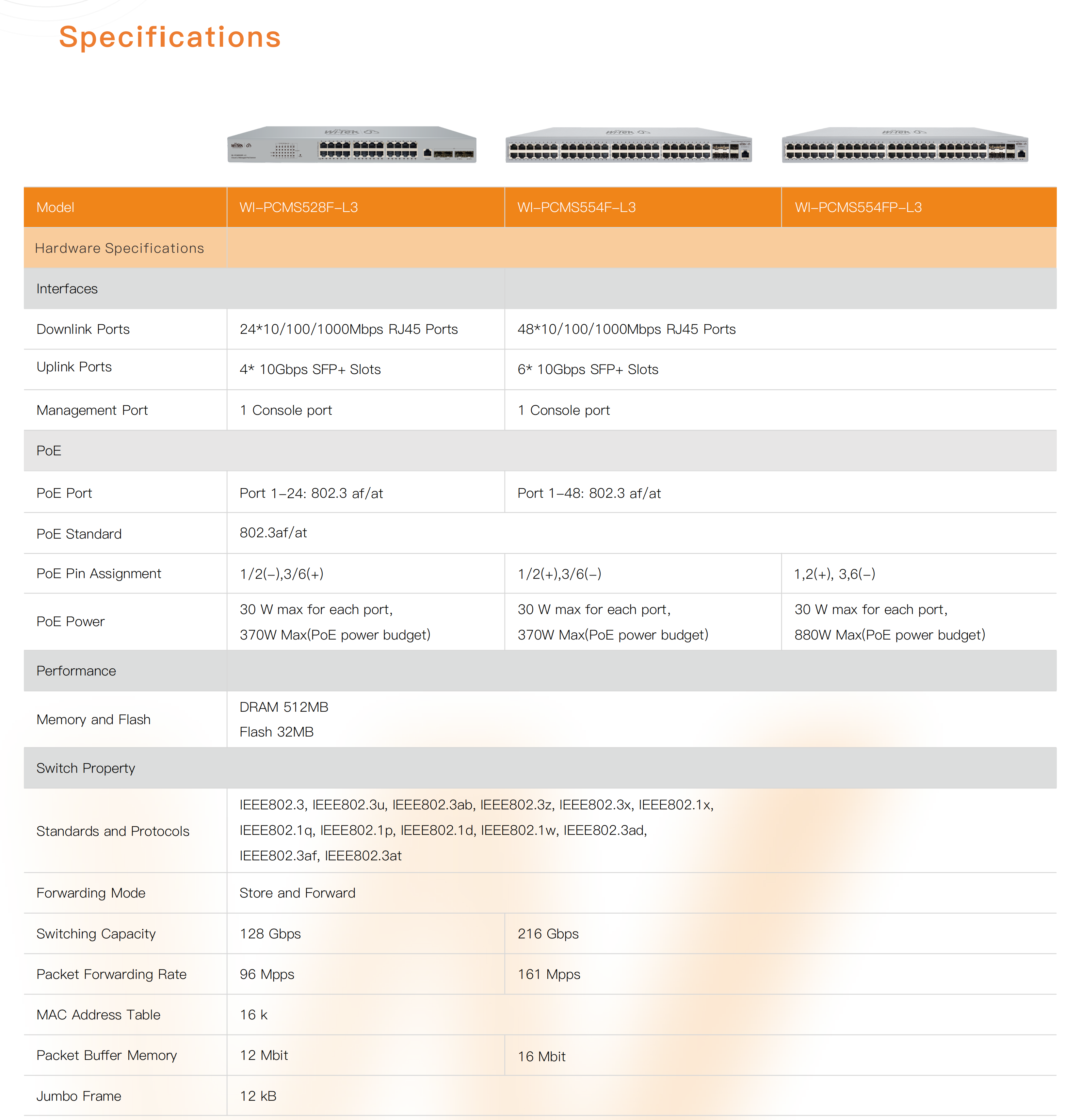 Home < Products < Switch < Cloud L3 Switch < WI-PCMS554FP-L3
