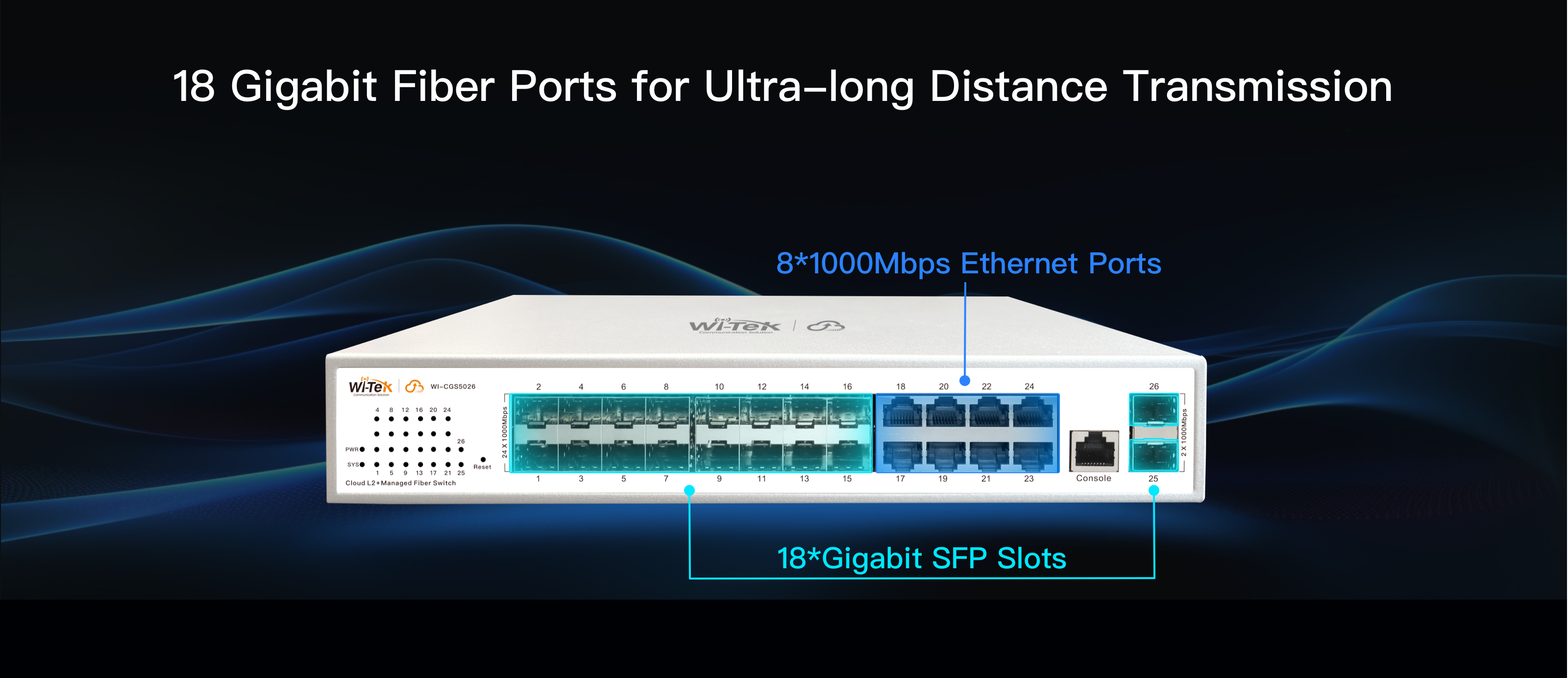 ● 8 Gigabit RJ-45 ports and 18 Gigabit SFP slots