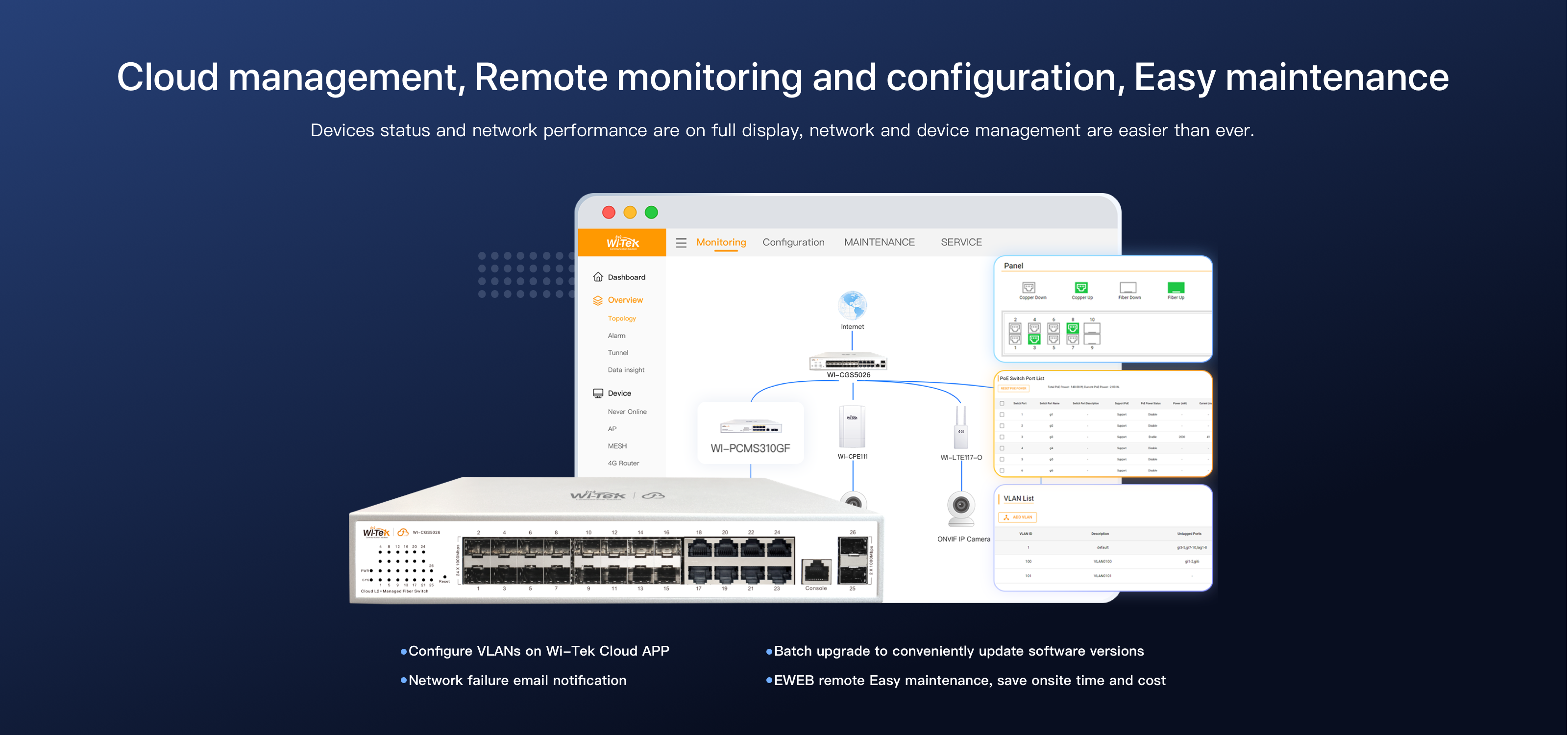 ● Support cloud management, easy to maintain and manage