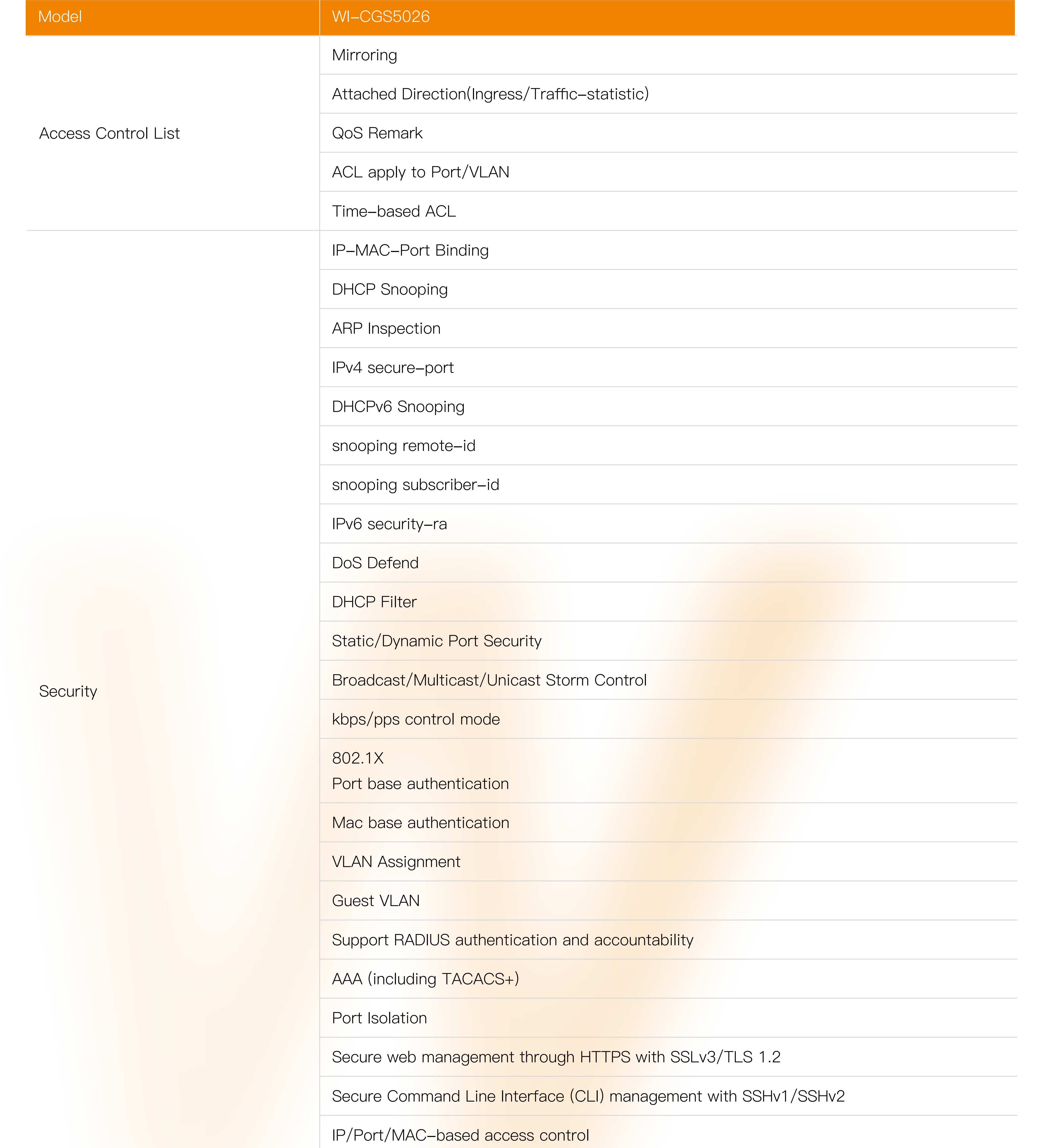 ● Supports ACL, DoS Defend, Storm control, DHCP Snooping and other security policies to protect your network.