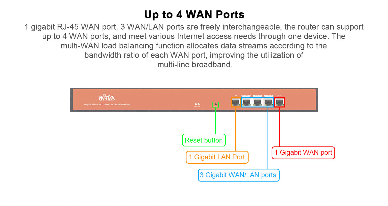 ● 5 Gigabit Ports(1× WAN + 3× WAN/LAN + 1× LAN)