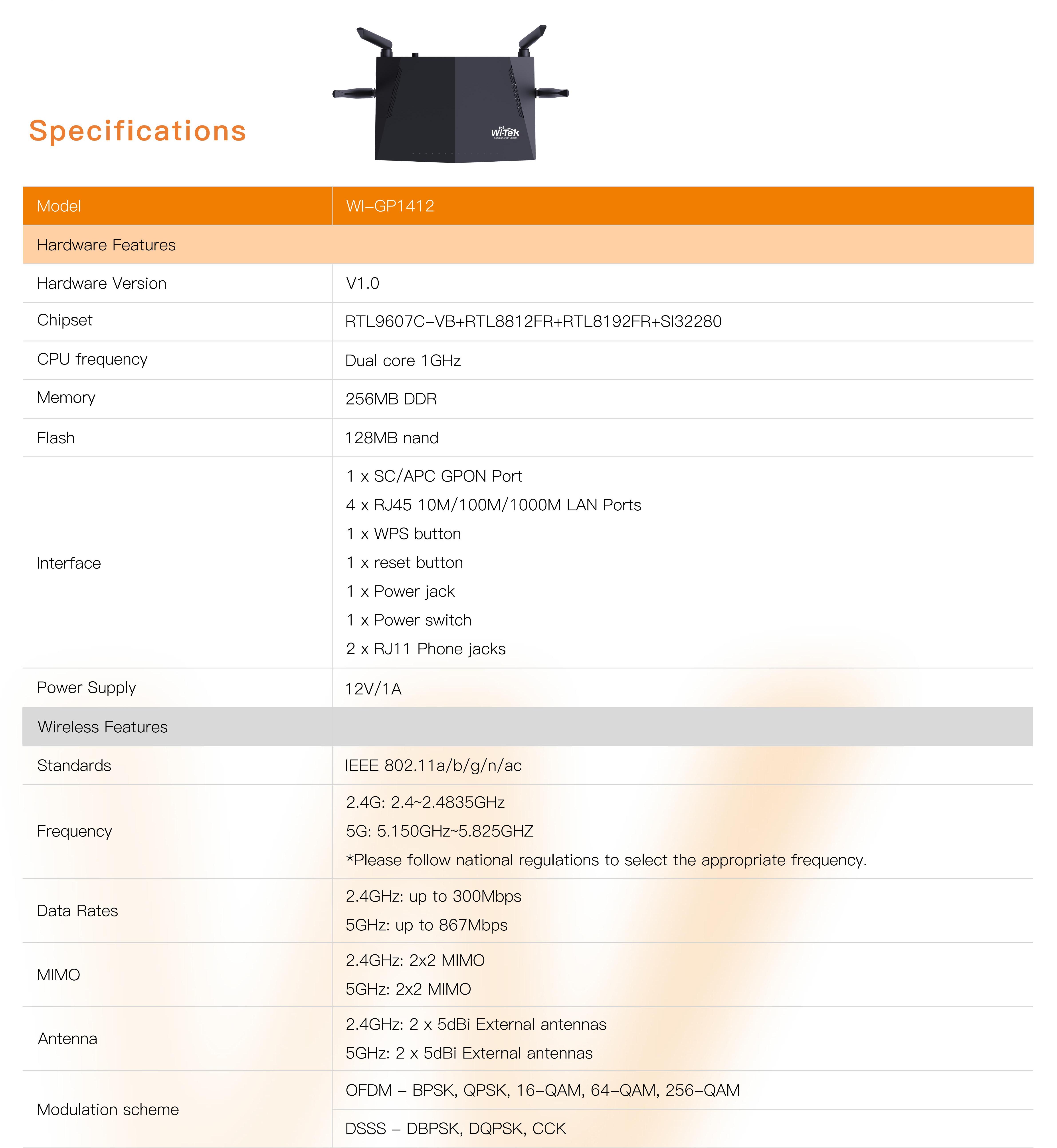 Home < Products < ISP Wi-Fi < GPON Router < WI-GP1412