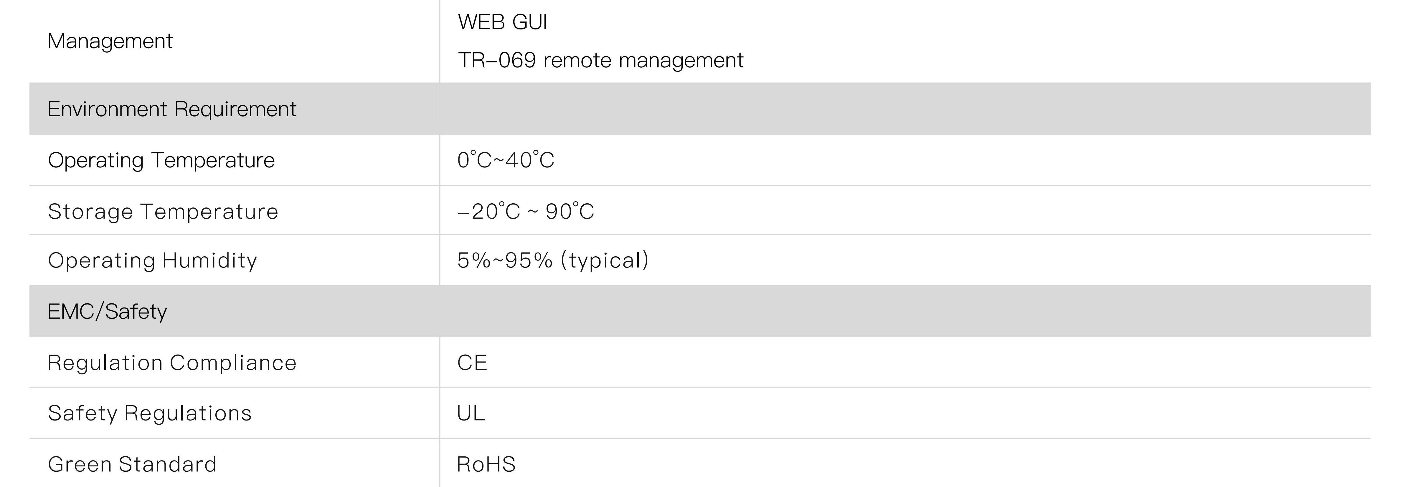 ● GPON UP: 1.25Gbps, Down: 2.5Gbps