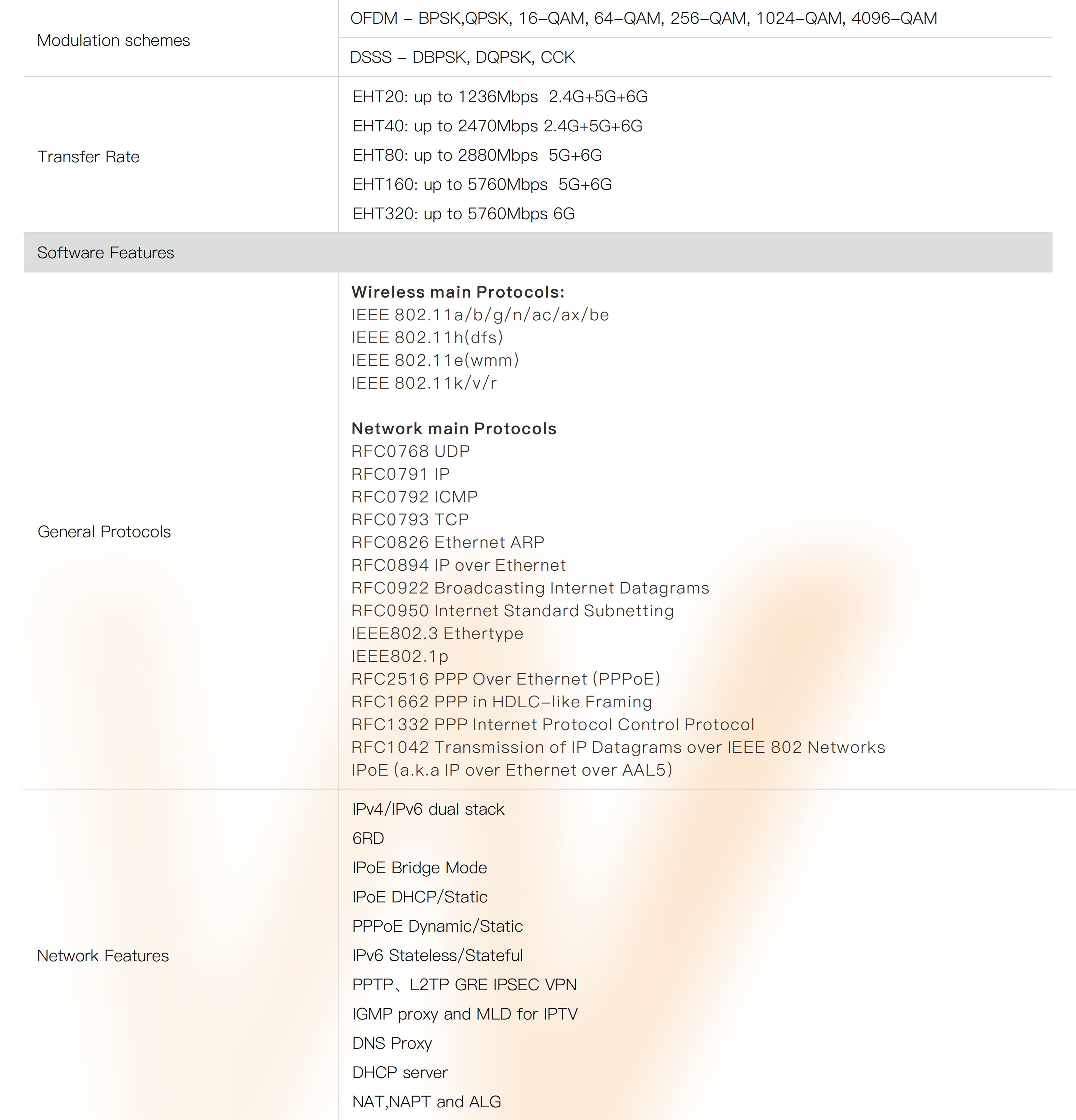● 1032 Mbps@2.4GHz, 2882Mbps@5GHz, 5764Mbps@6GHz