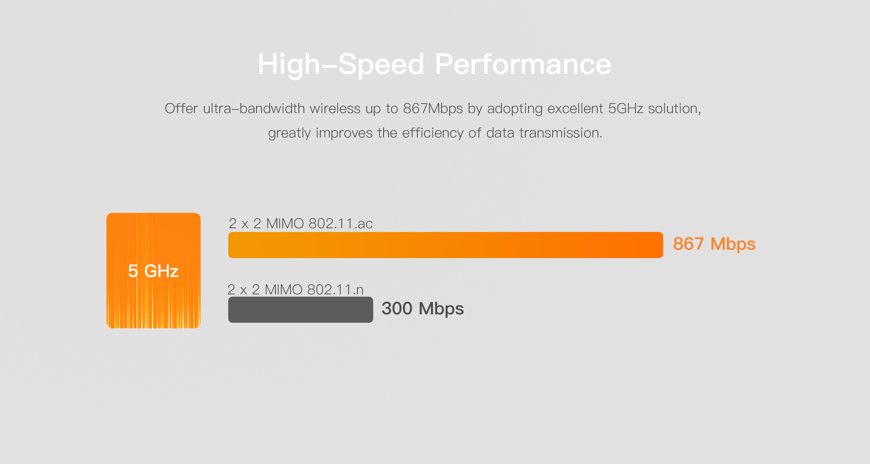 ● IEEE 802.11a/n/ac Wireless speed up to 867Mbps