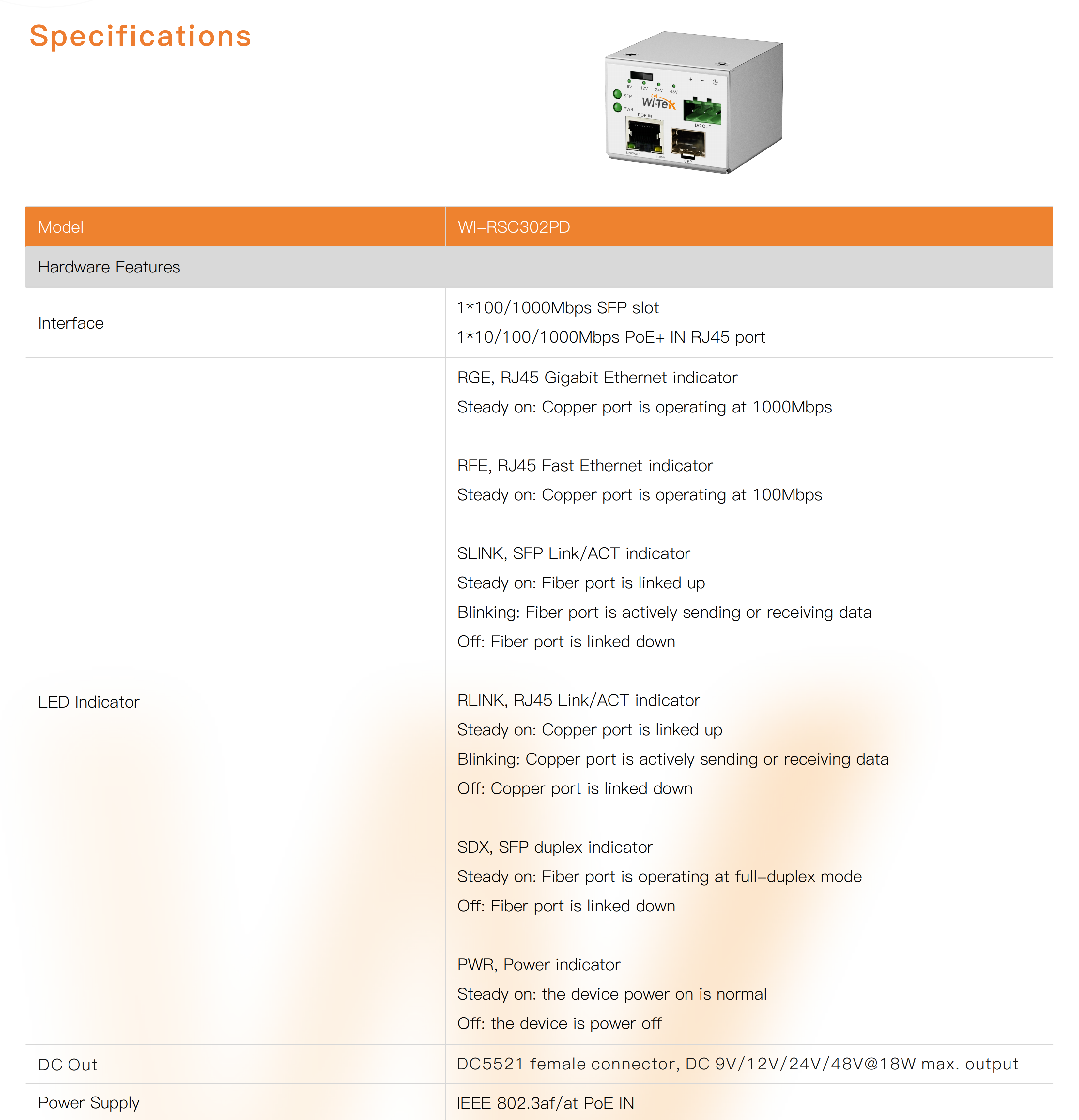 ● Supporting IEEE802.3af/at PoE input enables flexible deployment
