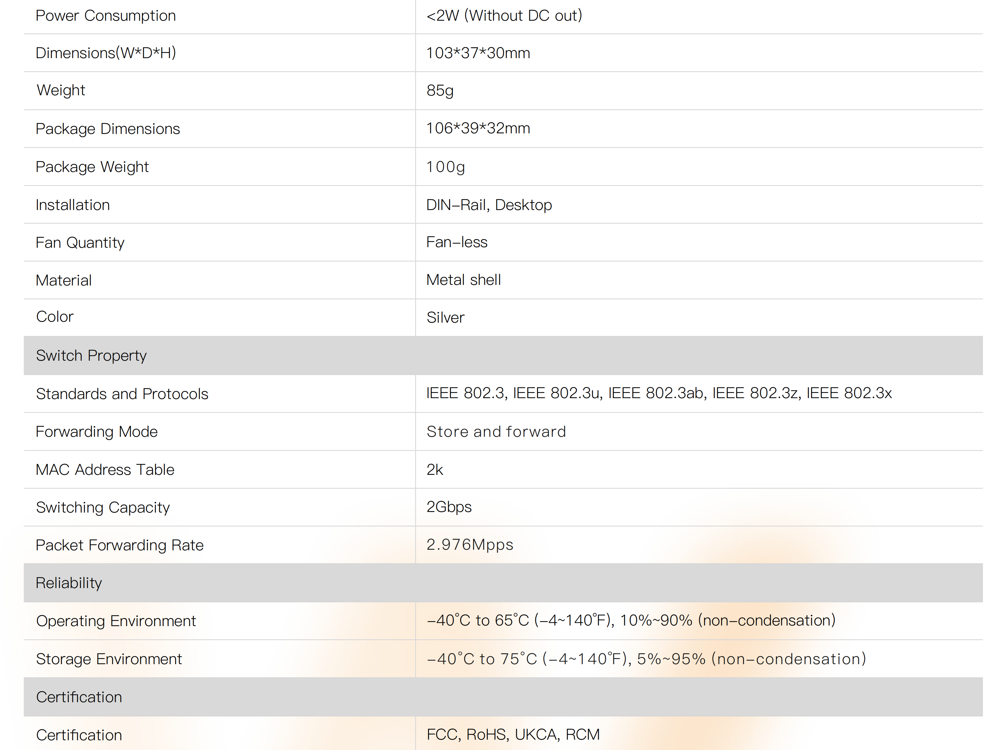 ● Provide DC 9V/12V/24V/48V DC@18W output, makes it easy for terminal devices access