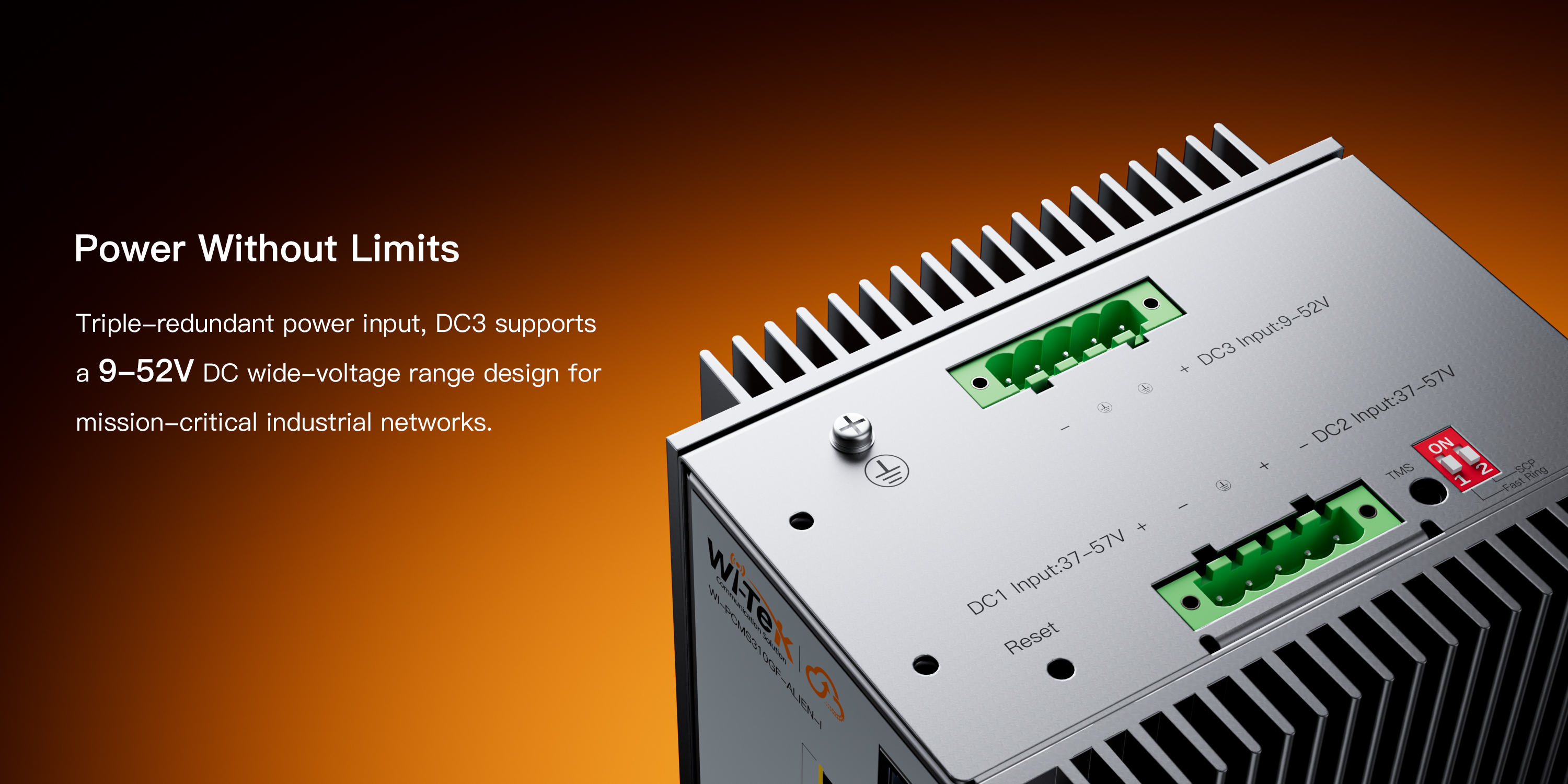 ● Support three power input; DC3 supports wide DC Input 9V to 52V