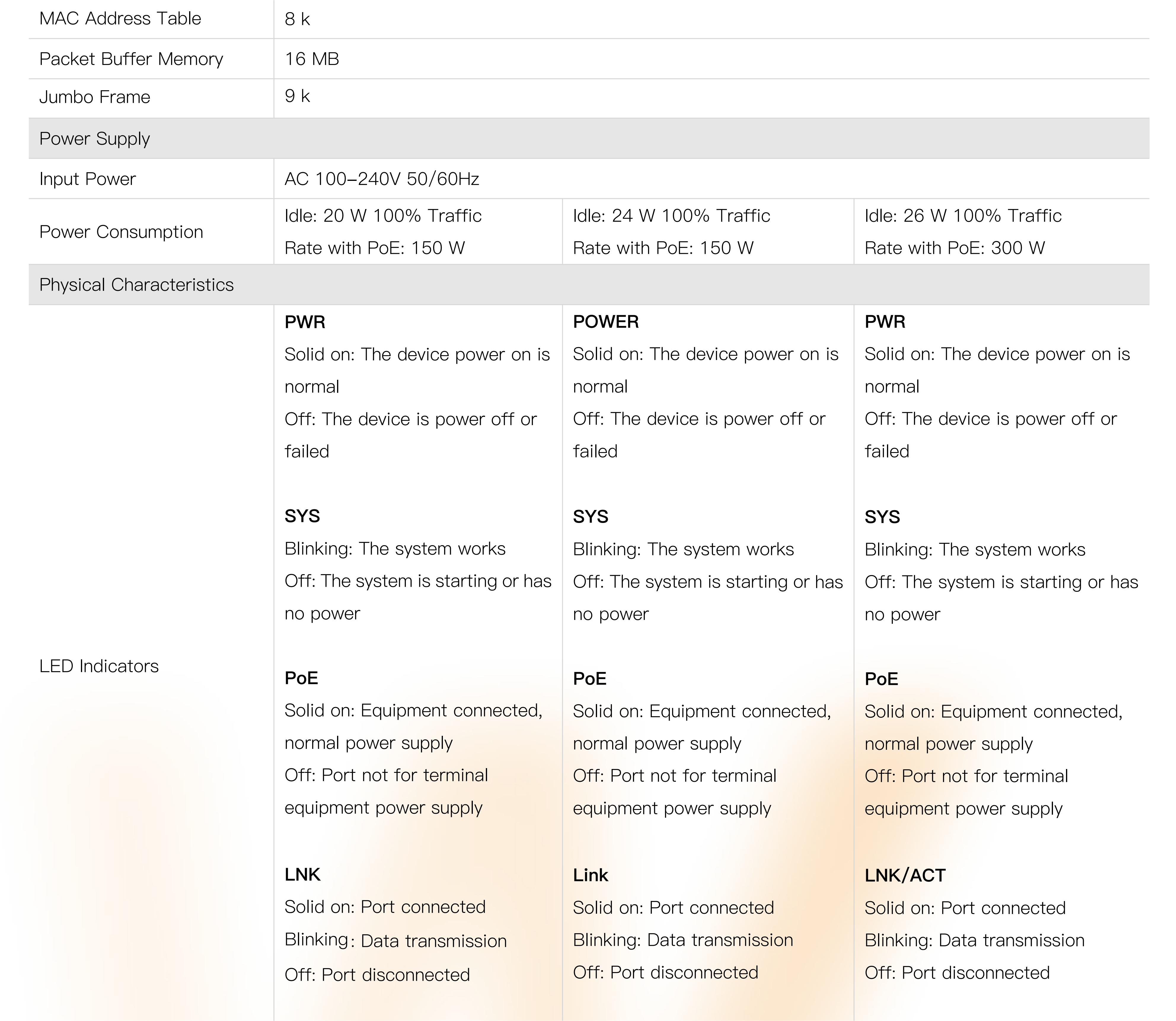 Support Web, CLI(Console Port, Telnet, SSH), SNMP and RMON bring powerful management capabilities