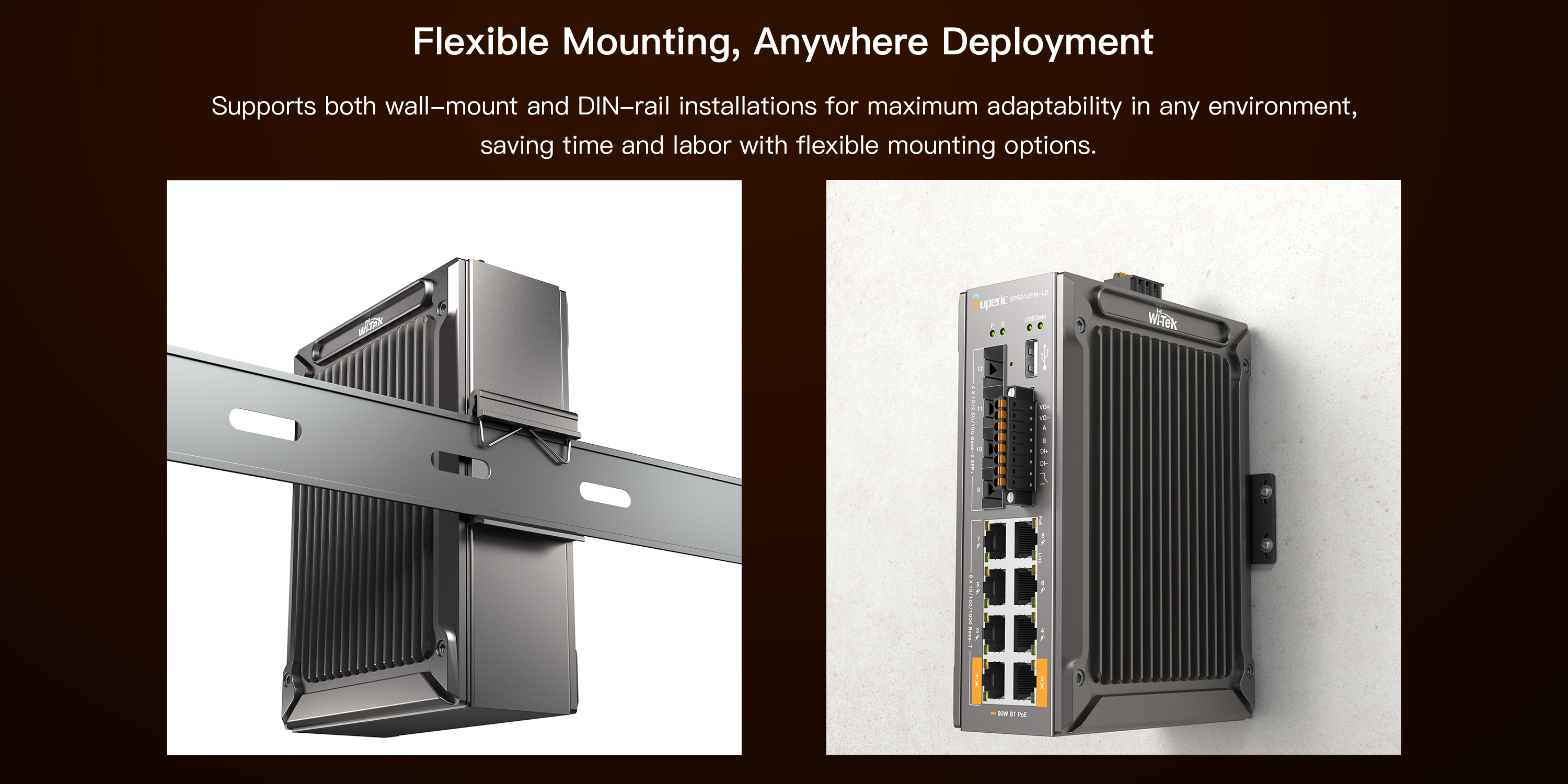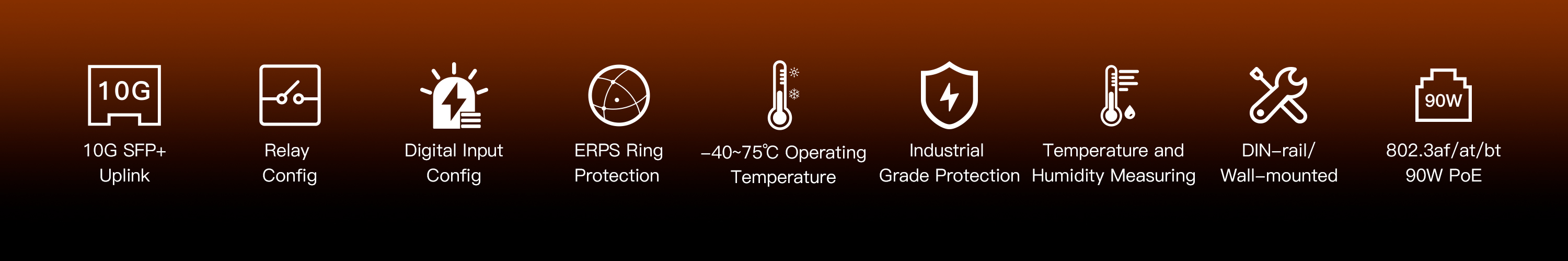 ● G.8032 ERPS protocol delivers ≤20 ms failover, ensuring seamless redundancy for critical industrial networks.