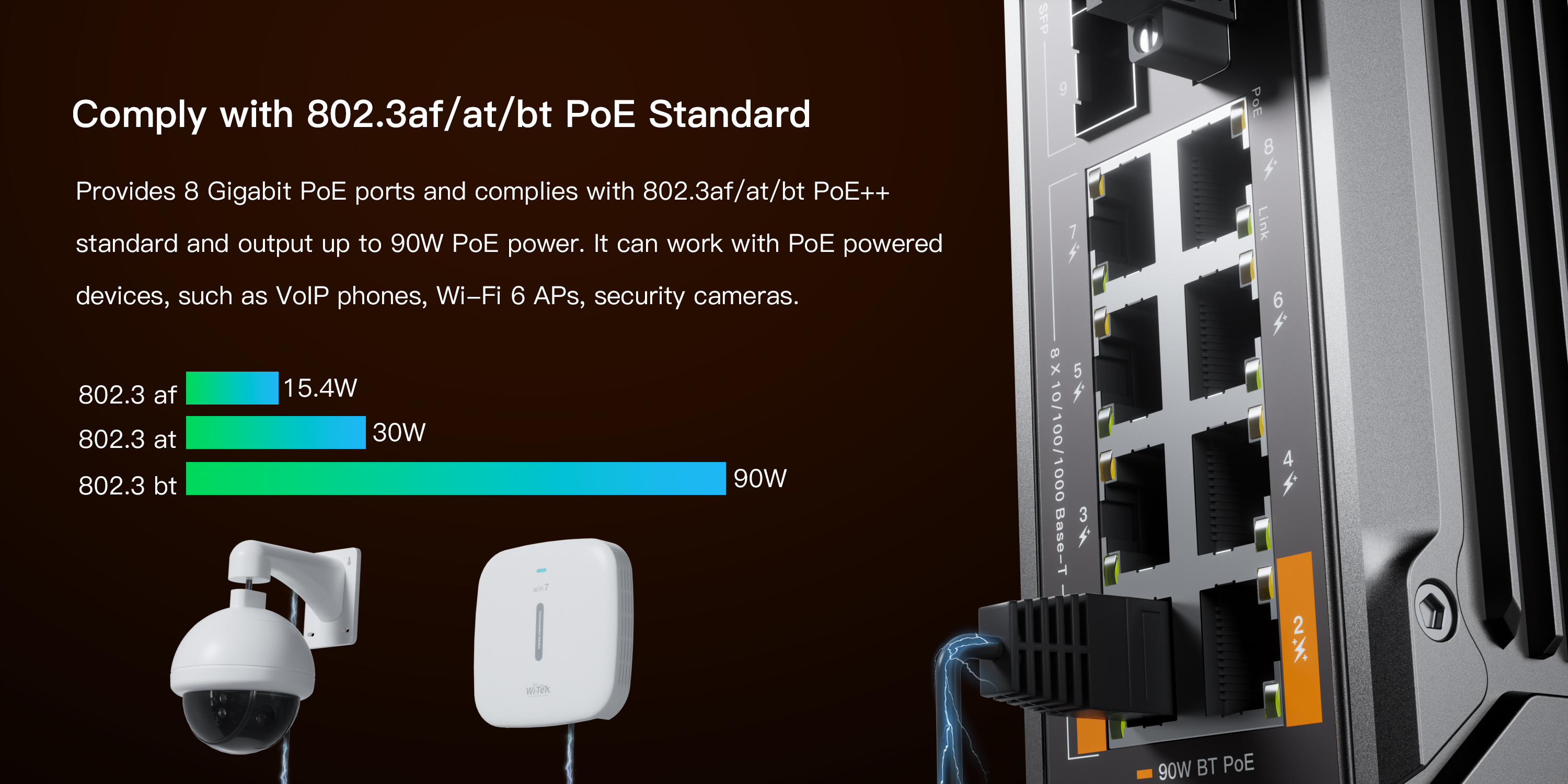 ● 2*10/100/1000 Base-T PoE++ RJ-45 ports,6*10/100/1000 Base-T PoE+