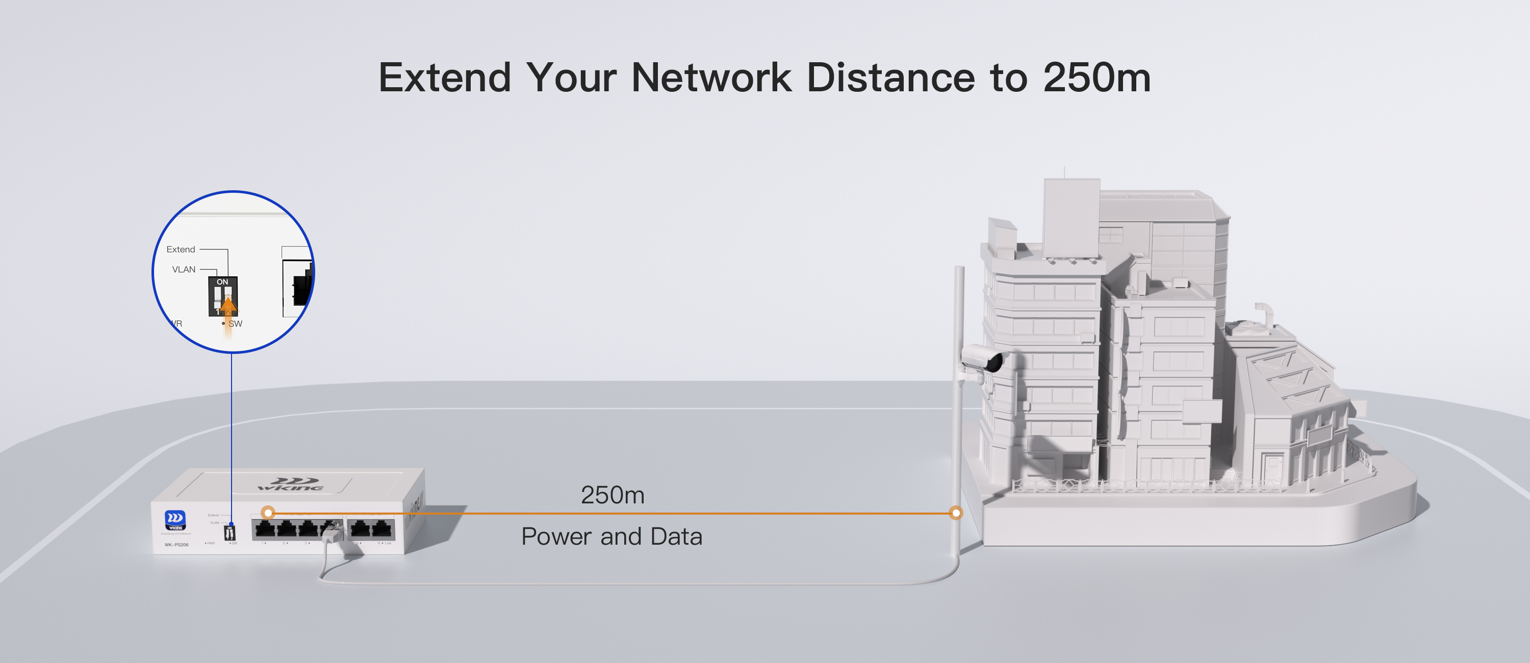 ● Support 250m Extend, Port VLAN, and PD Alive function on Independent DIP Switch