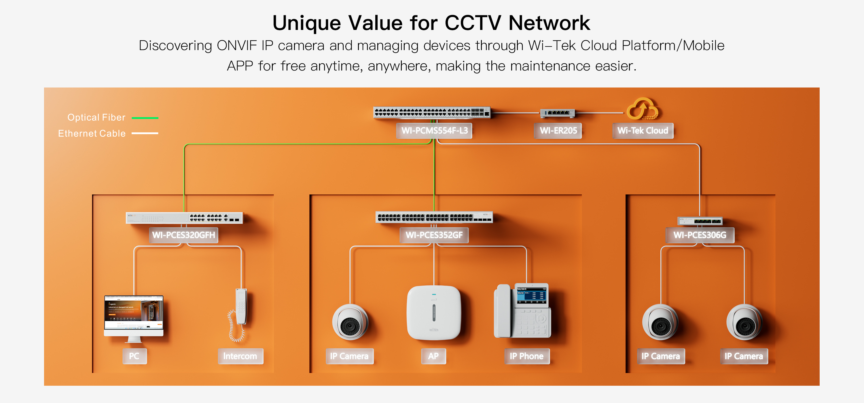 ● Support Wi-Tek Cloud management for real-time monitoring and remote configuration