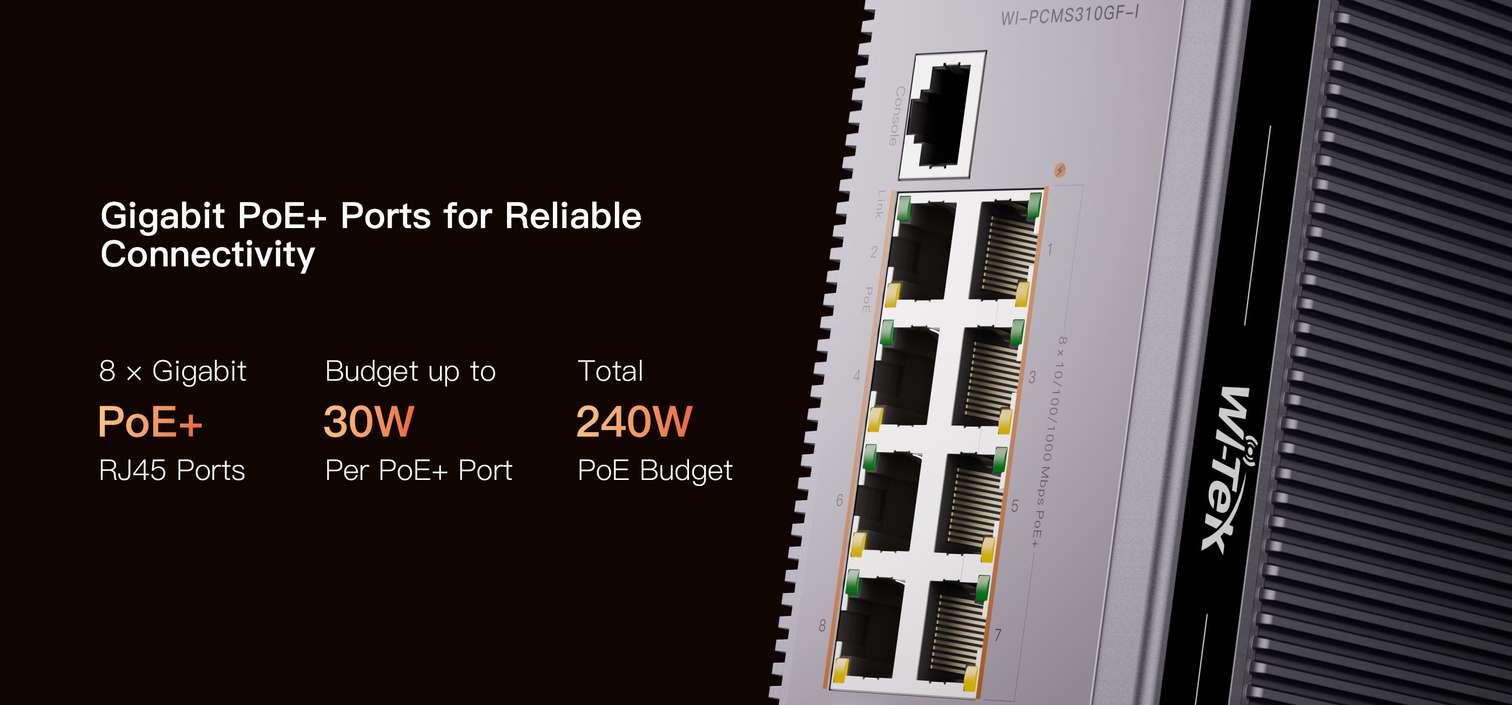 ● 8 * 10/100/1000 Mbps PoE+ ports and 2 * 1000 Mbps SFP slots