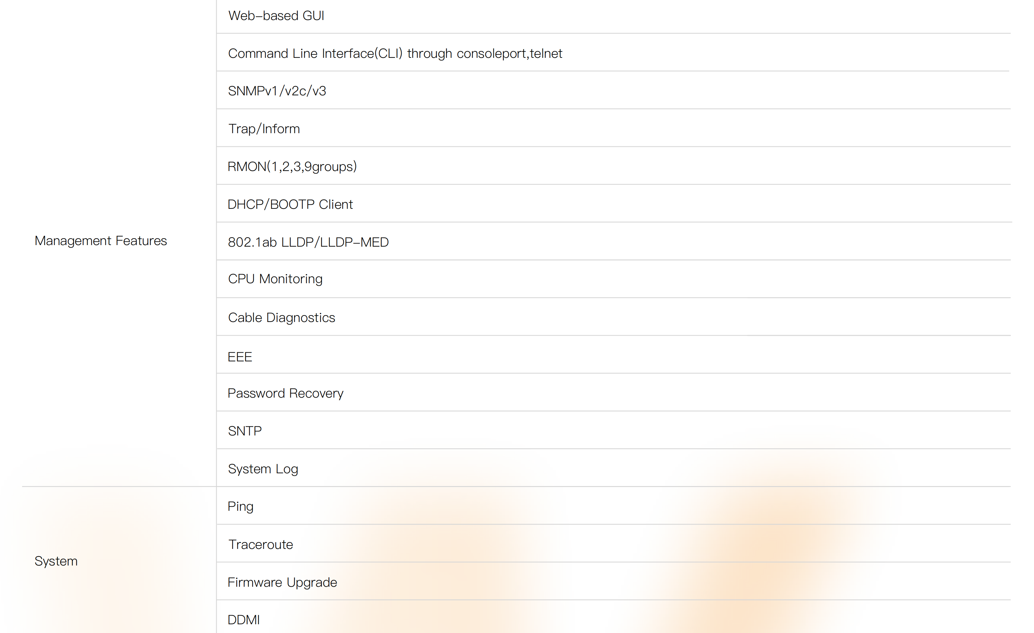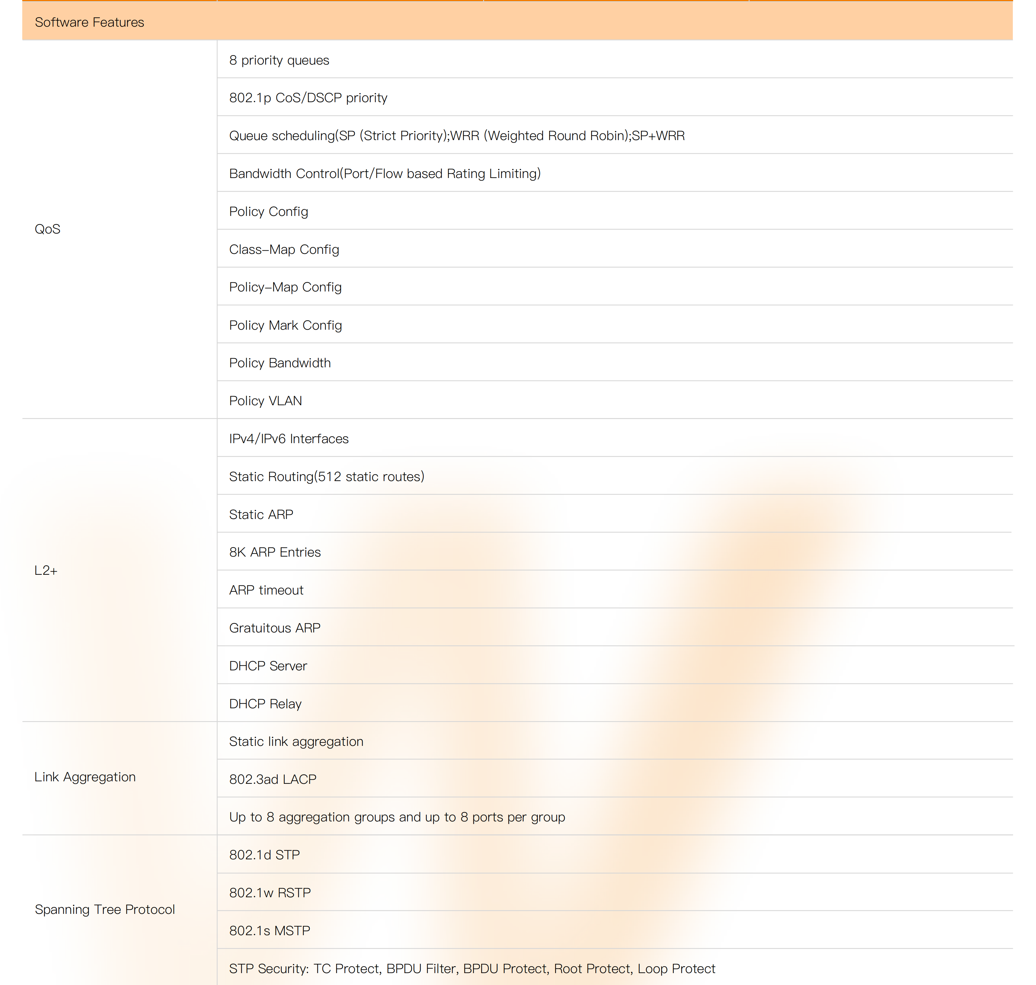 ● Abundant L2+ Managed Features: ERPS, QoS, DHCP, Static Routing