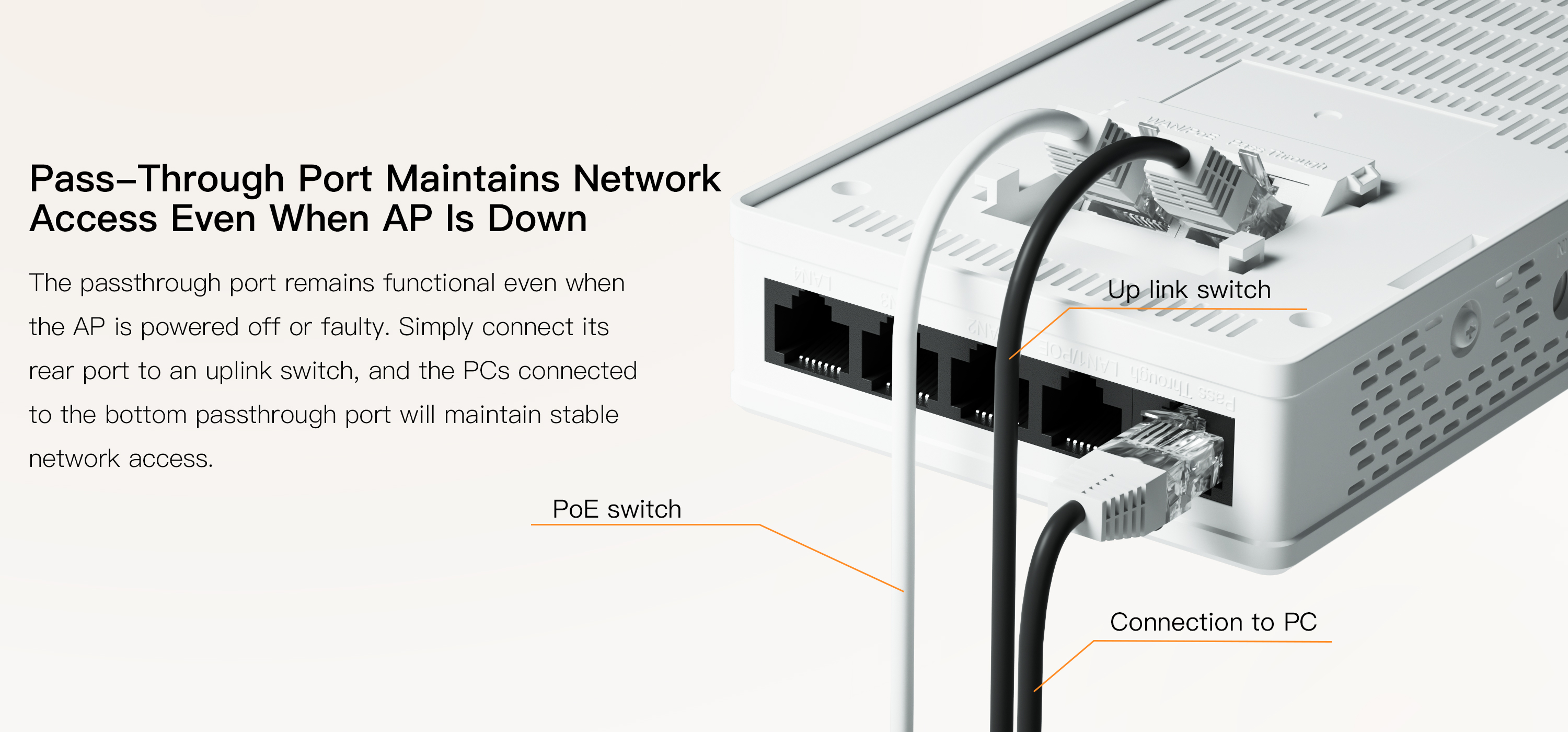 ● 1 x Pass-Through Port maintains Network access even when AP is down