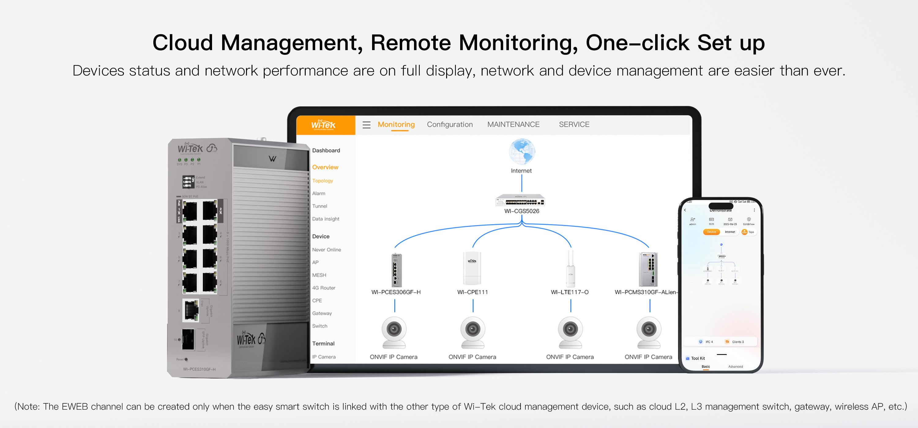 ● Easily remote manage your ONVIF camera via the Wi-Tek Cloud platform/ mobile APP