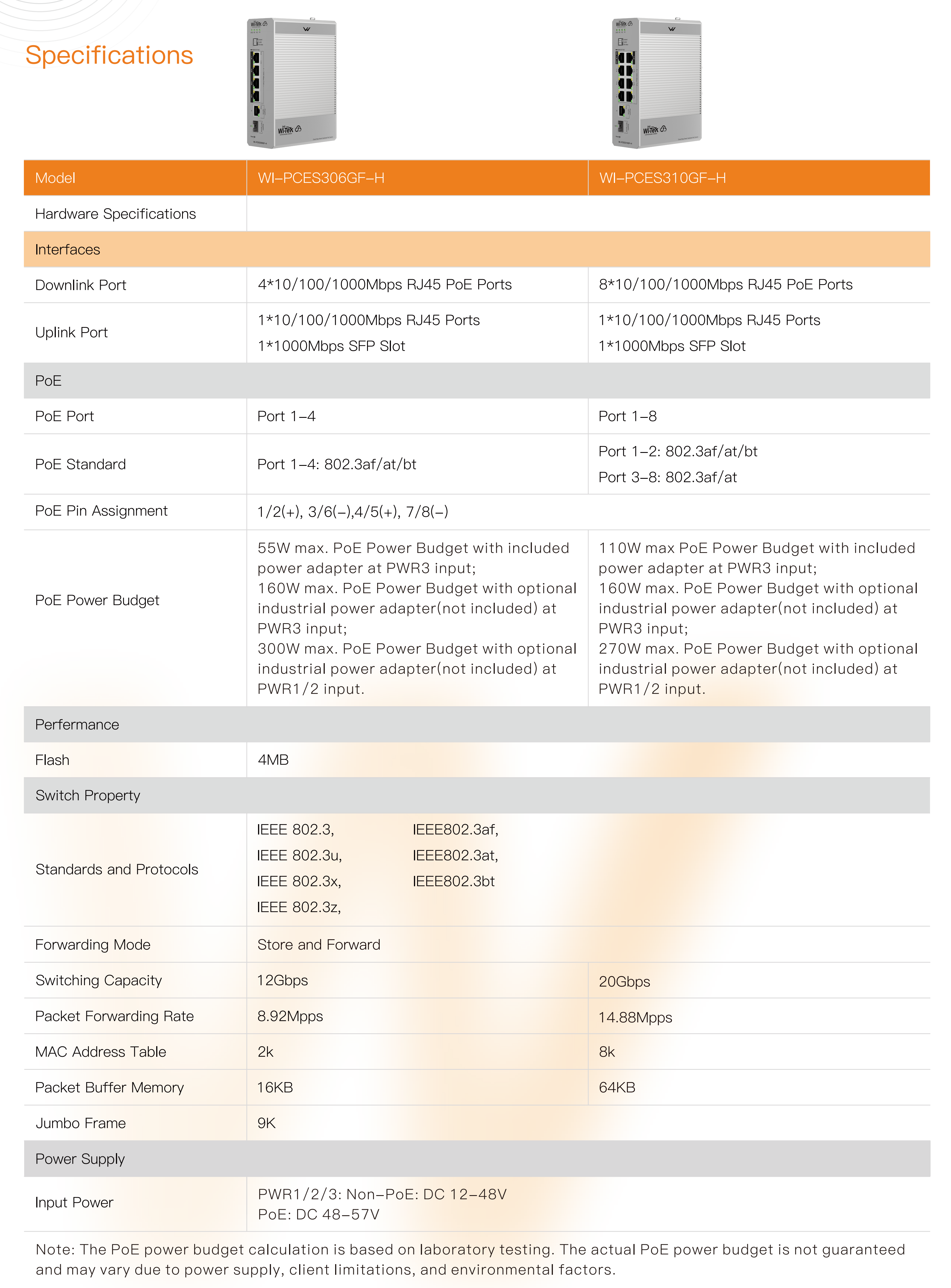 ● Port 1-2: 802.3af/at/bt PoE++ 90W, Port 3-8: 802.3af/at PoE+ 30W