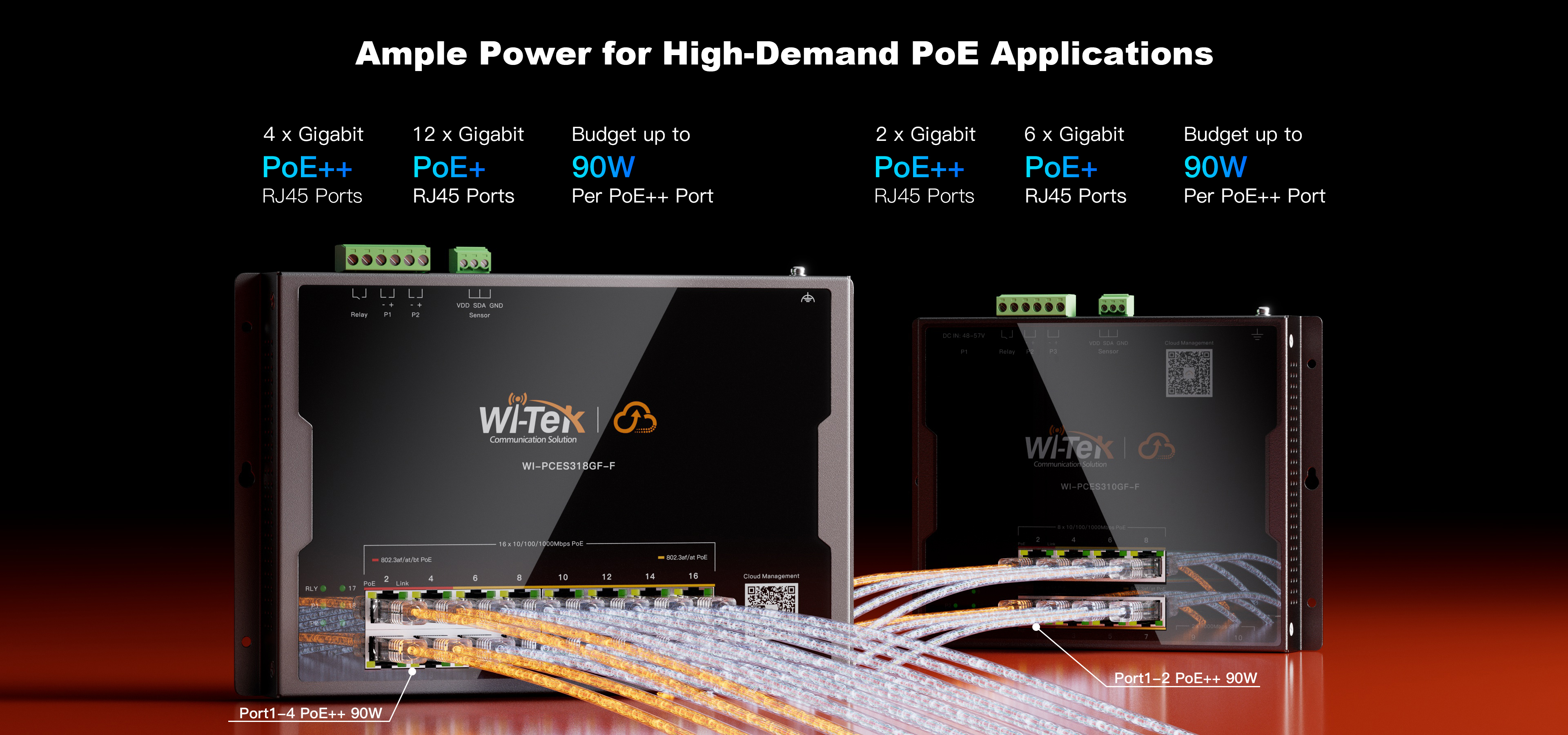 Port 1-4: 802.3af/at/bt 90W PoE++ Port 5-16: 802.3af/at 30W PoE+ |