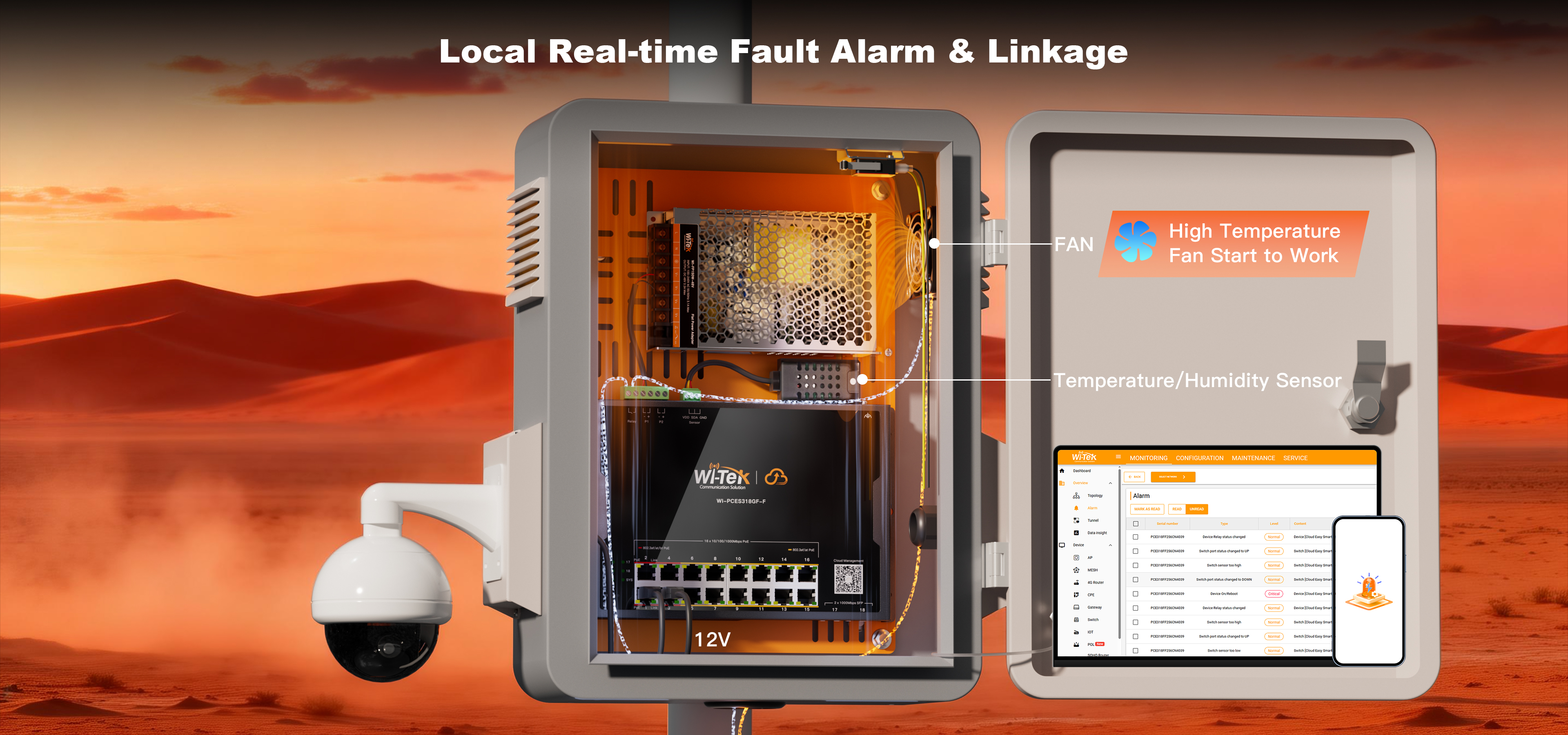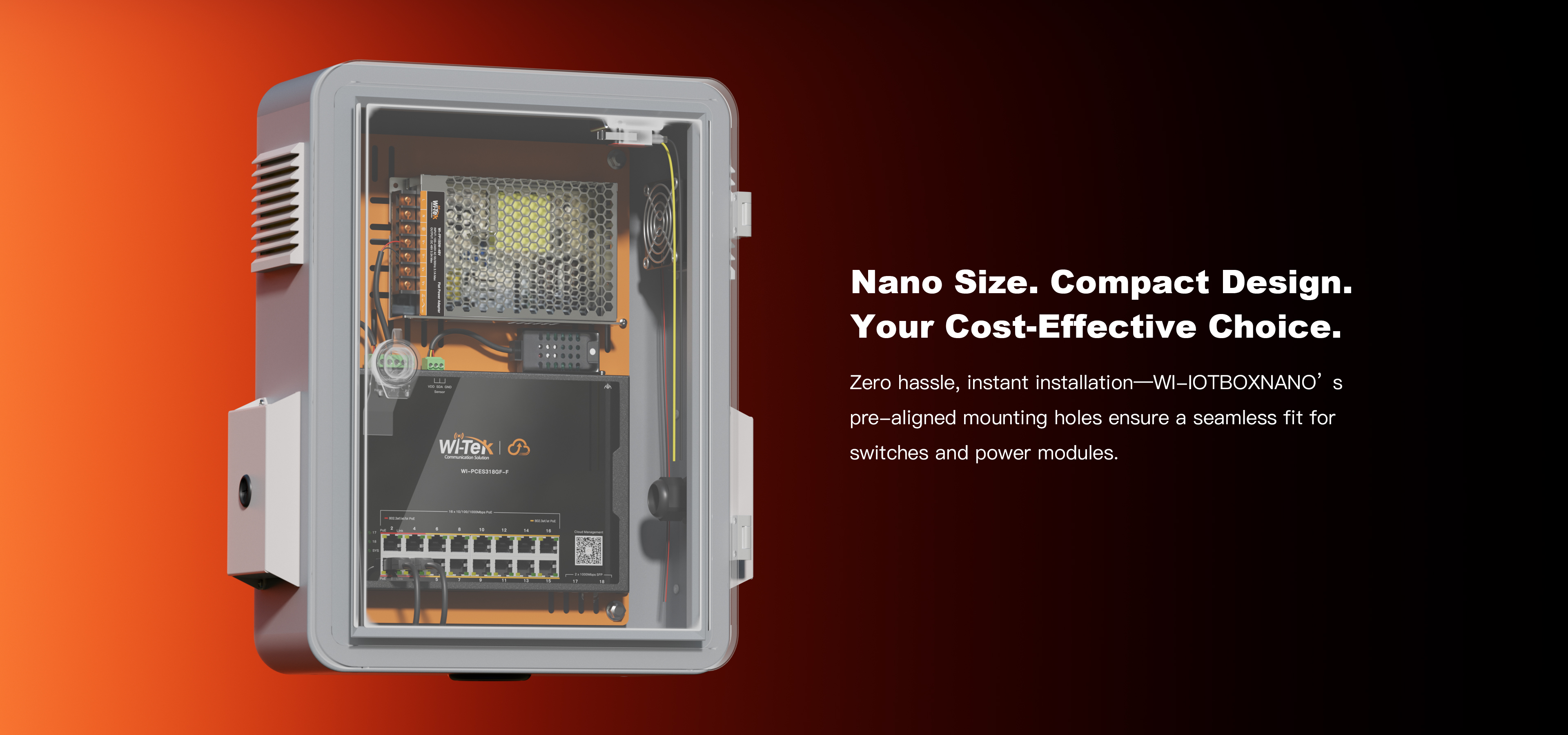 ● Cloud Outdoor Waterproof Hardened PoE Solution: WI-IOTBOXNANO+ WI-PCES318GF-F+ WI-FP150W-56V(include temperature/ humidity sensor and fan)