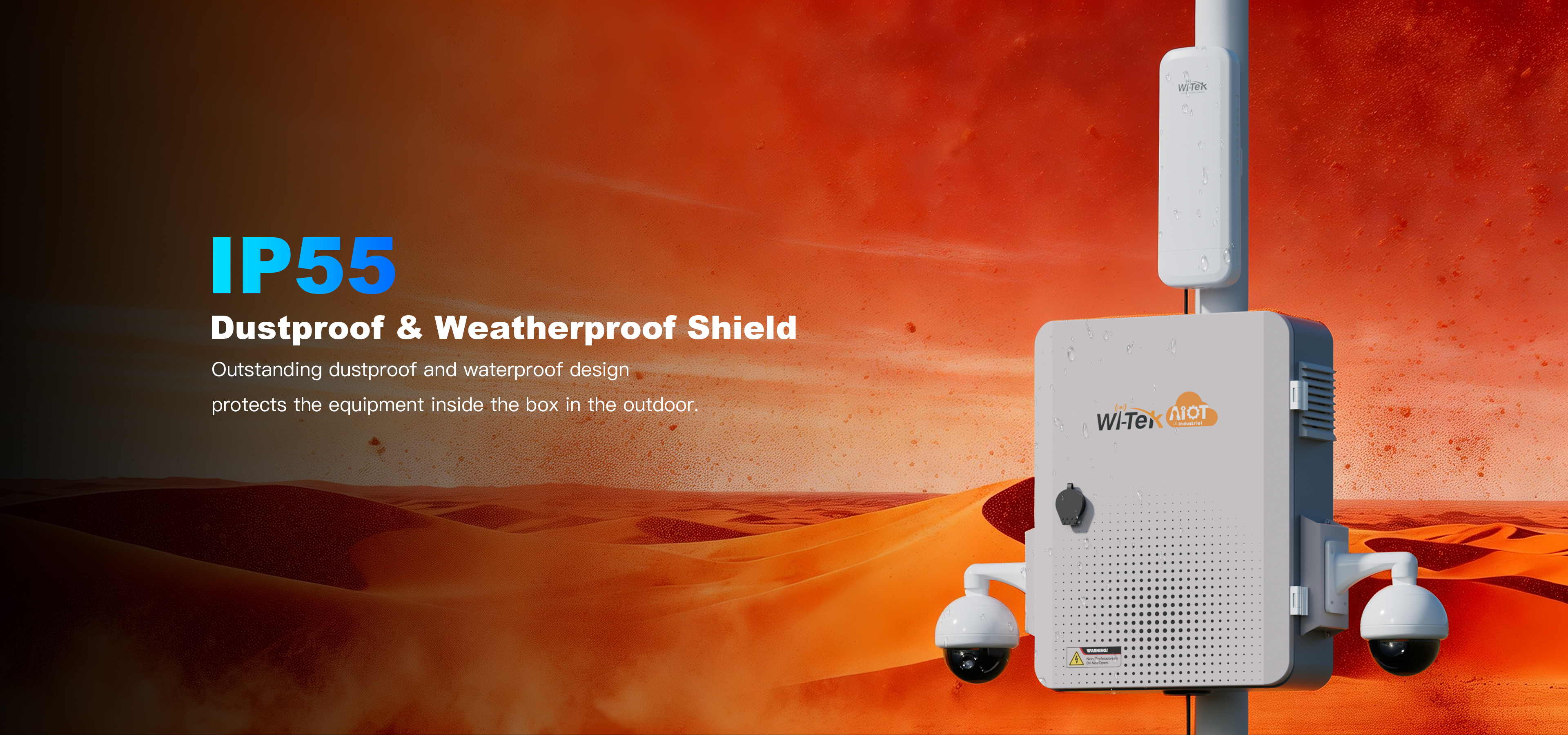 ● IP55 Ingress Protection, outstanding dustproof and waterproof design protects the equipment inside the box in the outdoor