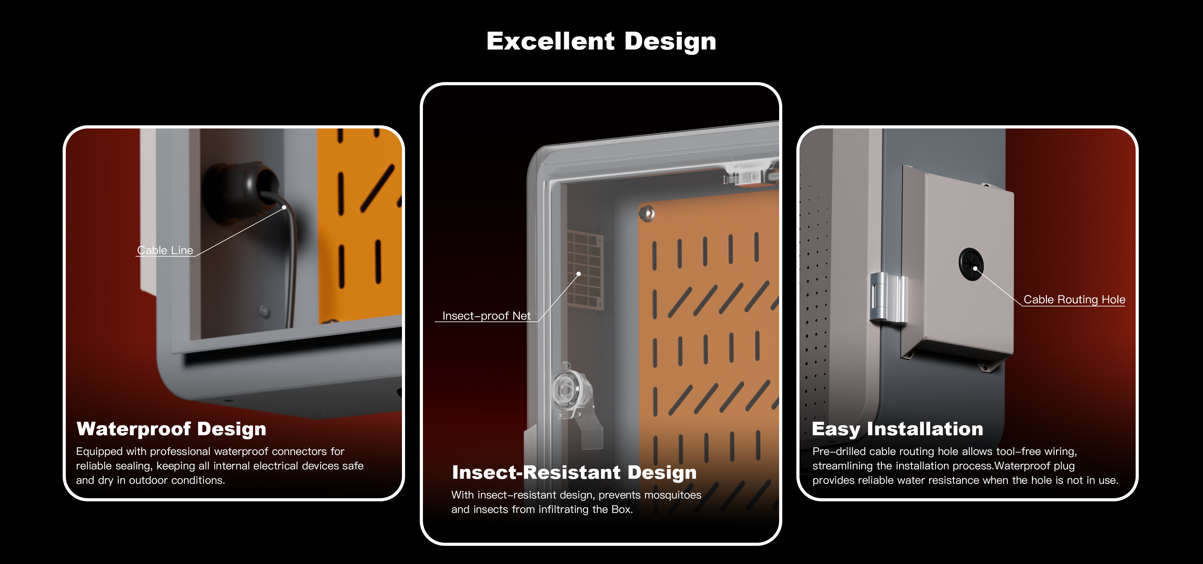 Outstanding dustproof and waterproof design protects the equipment inside the box in the outdoor.
