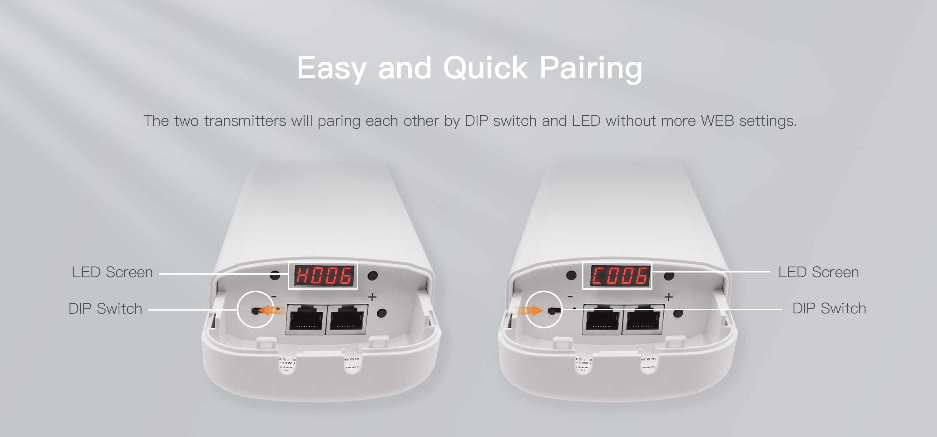 ● Built-in 15 dBi dual-polarized 30 degrees directional antenna