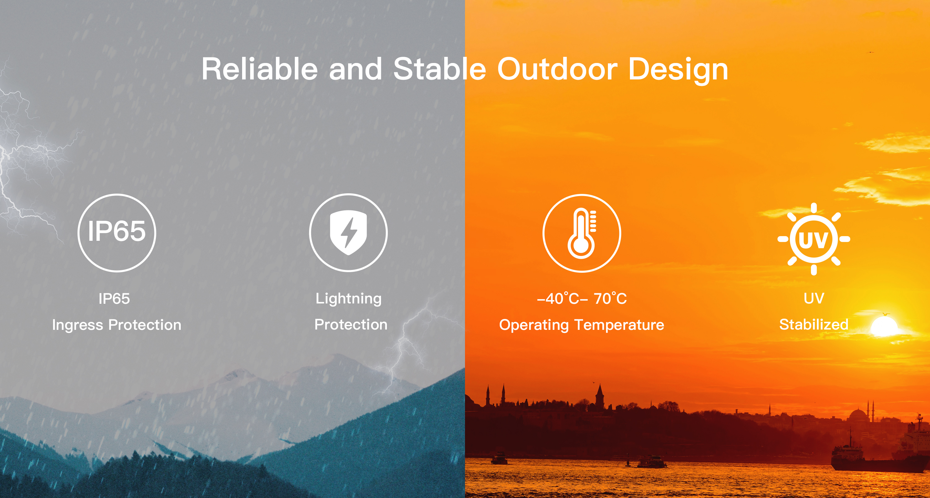 ● IP65 ingress protection, -40~70°C working environment