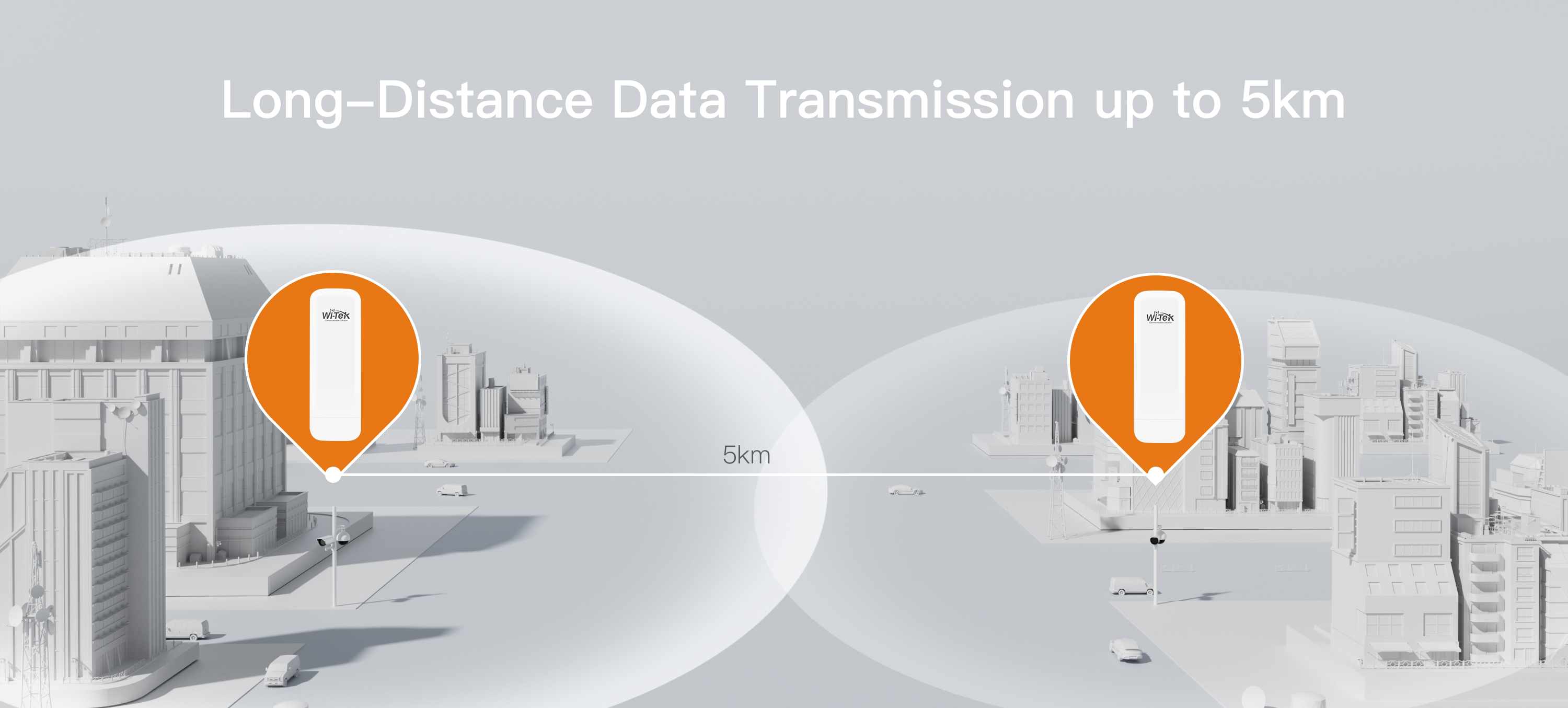 ● Long-range wireless transmission up to 5km