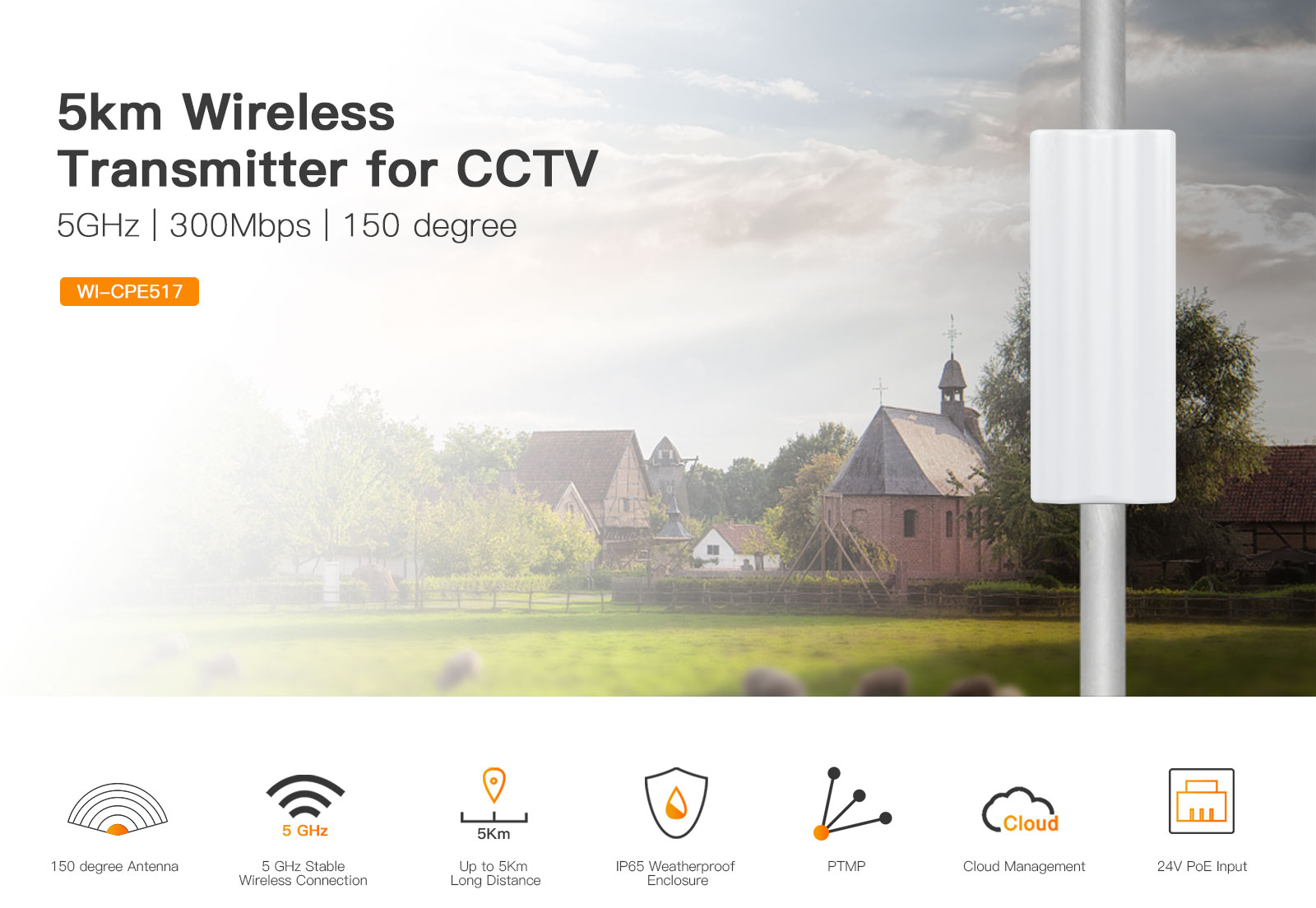 ● Long range wireless transmission up to 5km