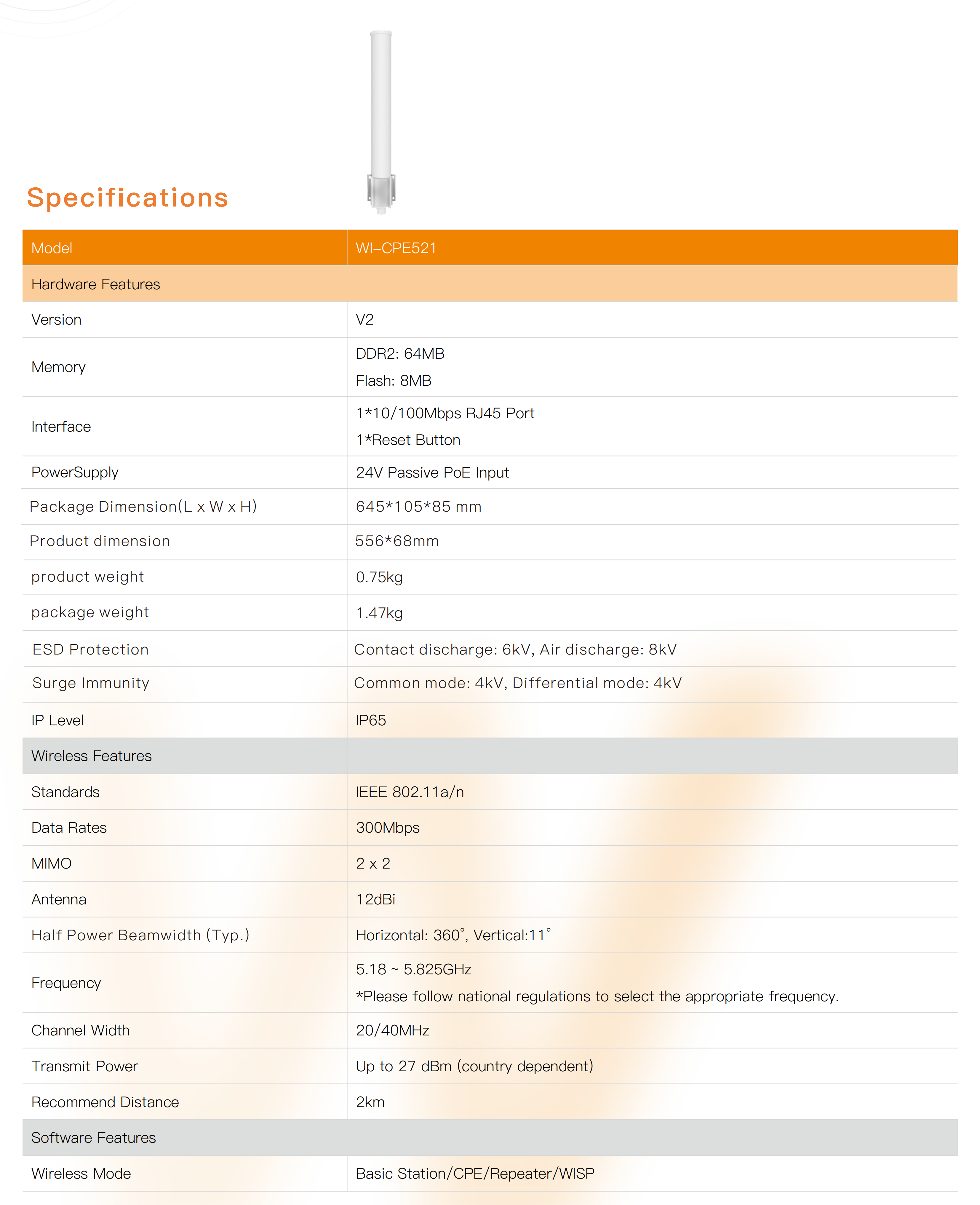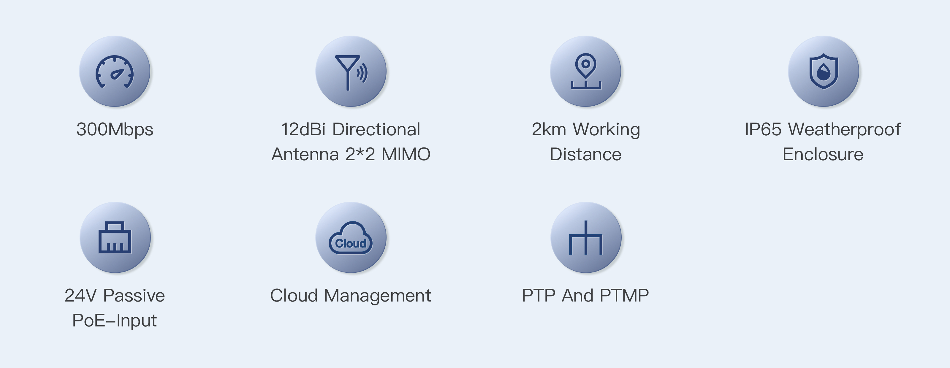 ● Built-in 12dBi 2x2 dual-polarized directional MIMO antenna