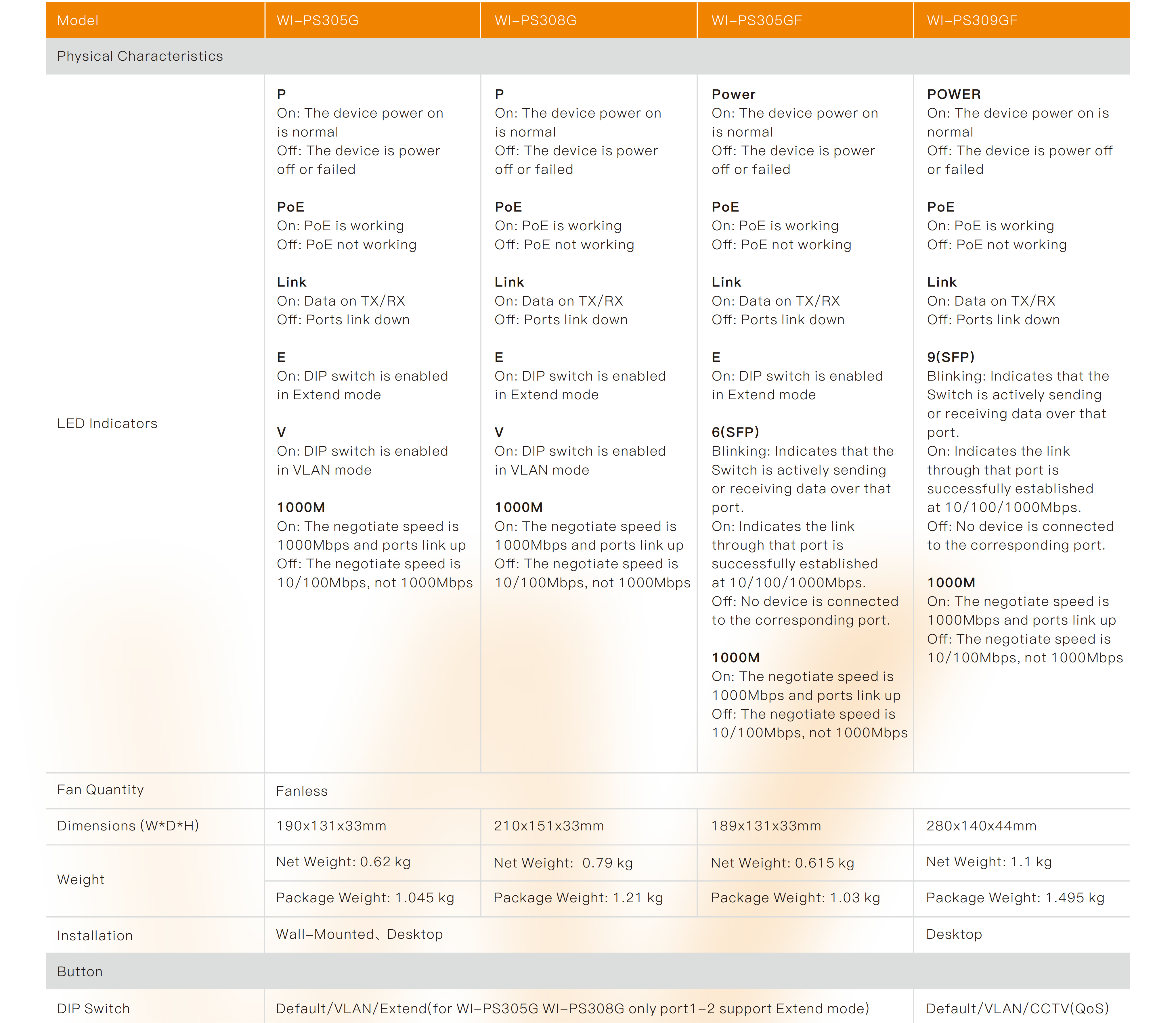 ● Smart DIP Switch: CCTV mode, Port VLAN mode