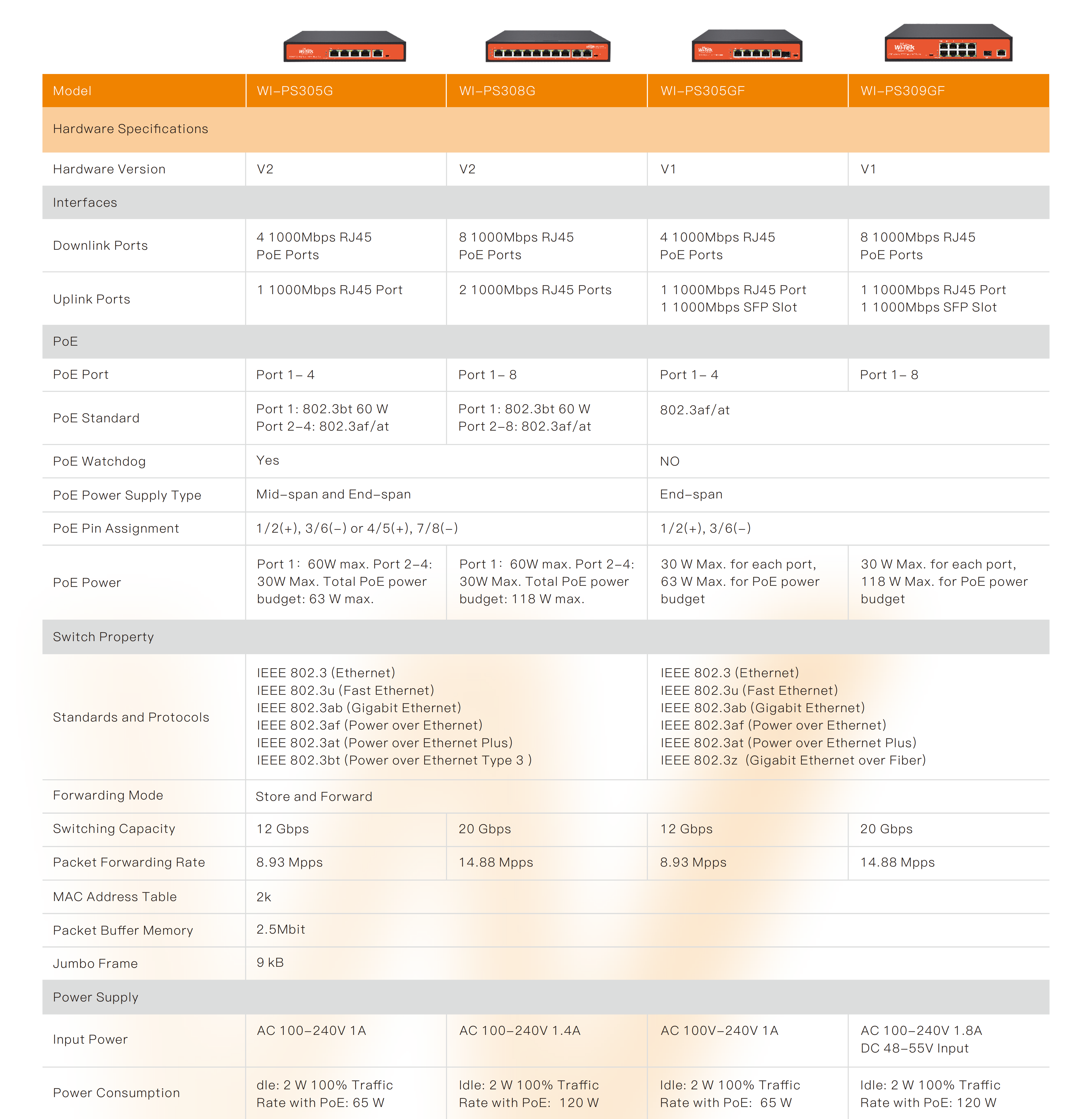 ● 8 10/100/1000Mbps RJ45 PoE Ports
