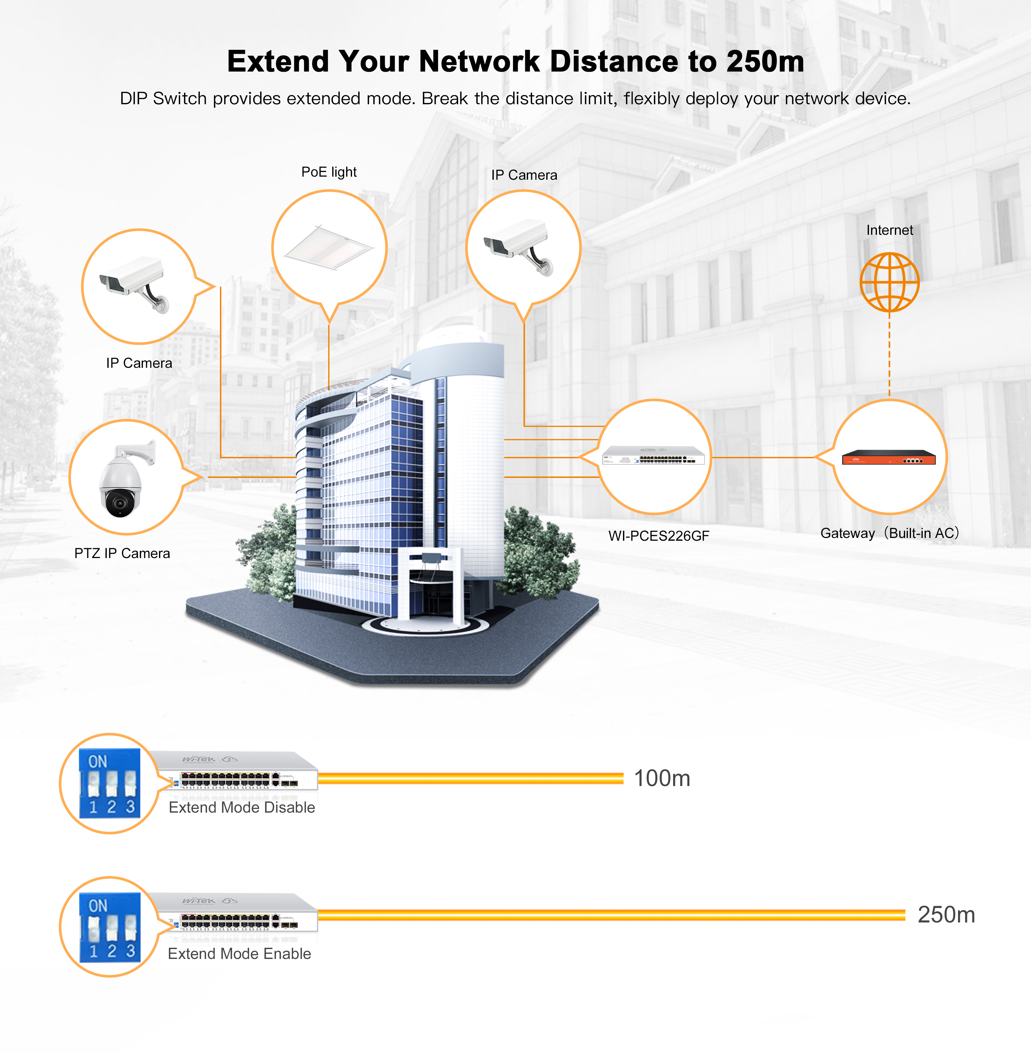 ● Smart DIP Mode: Extend mode, VLAN mode, PD Alive mode