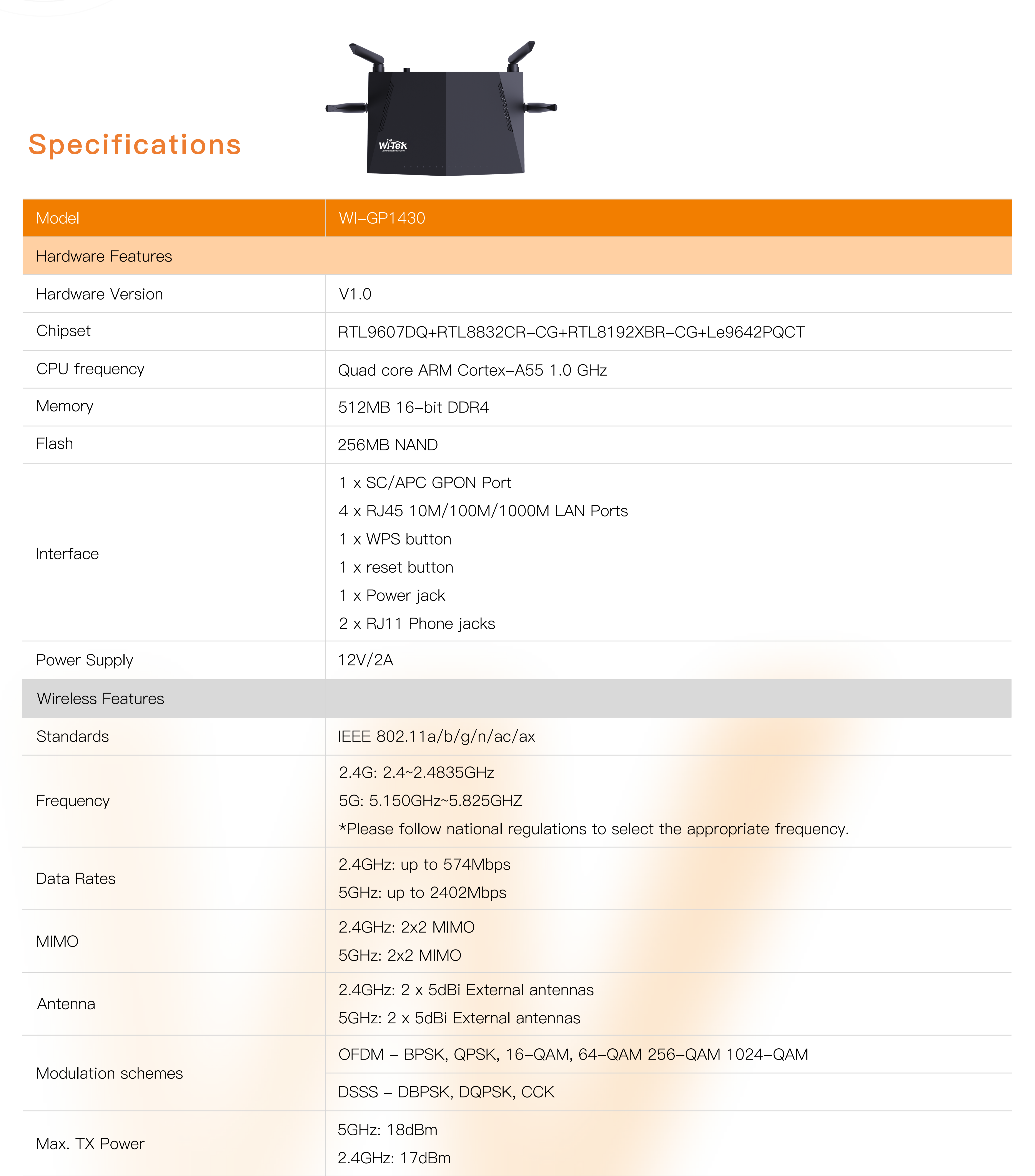 Home < Products < ISP Wi-Fi < GPON Router < WI-GP1430