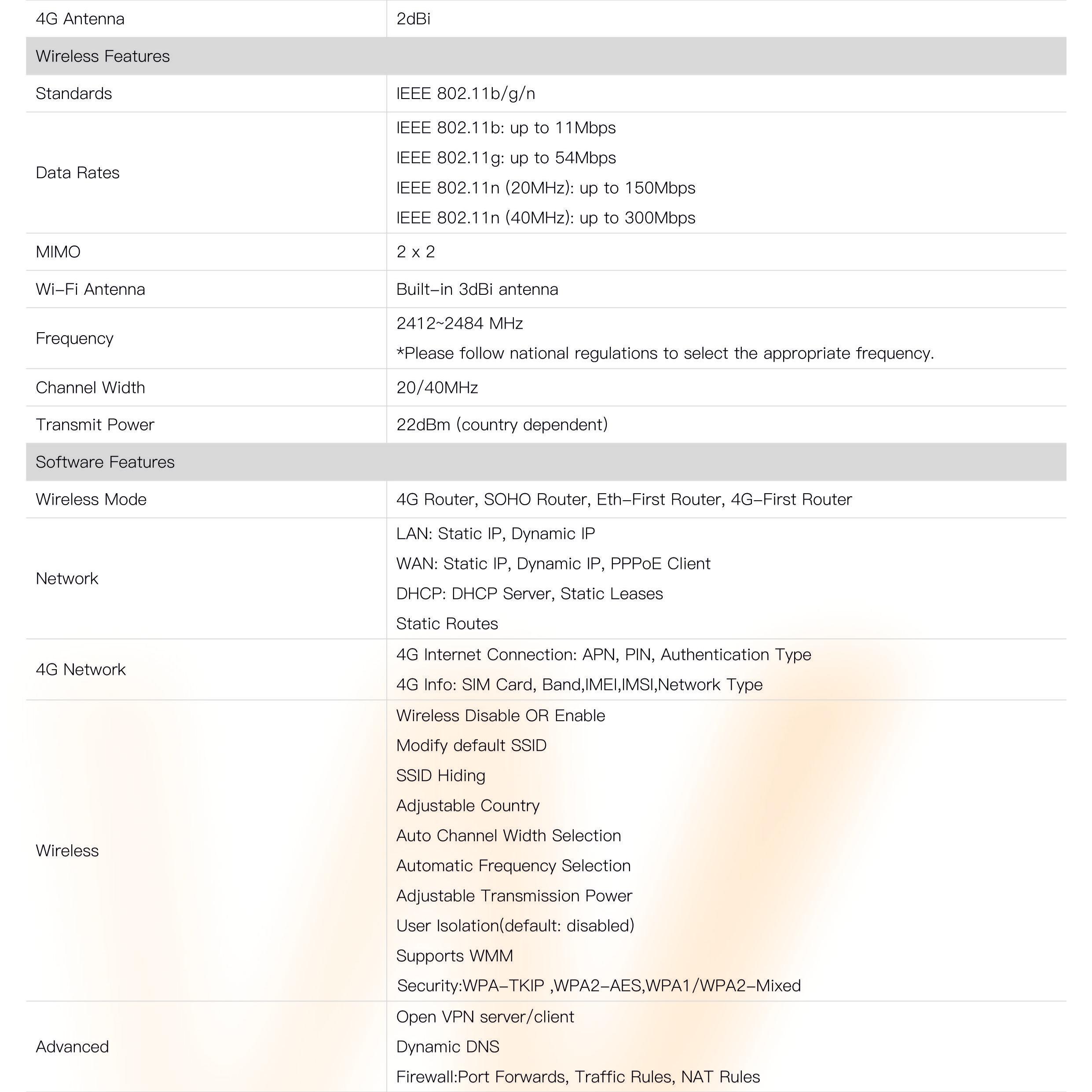 ● 4G Cat4 150/50 Mbps