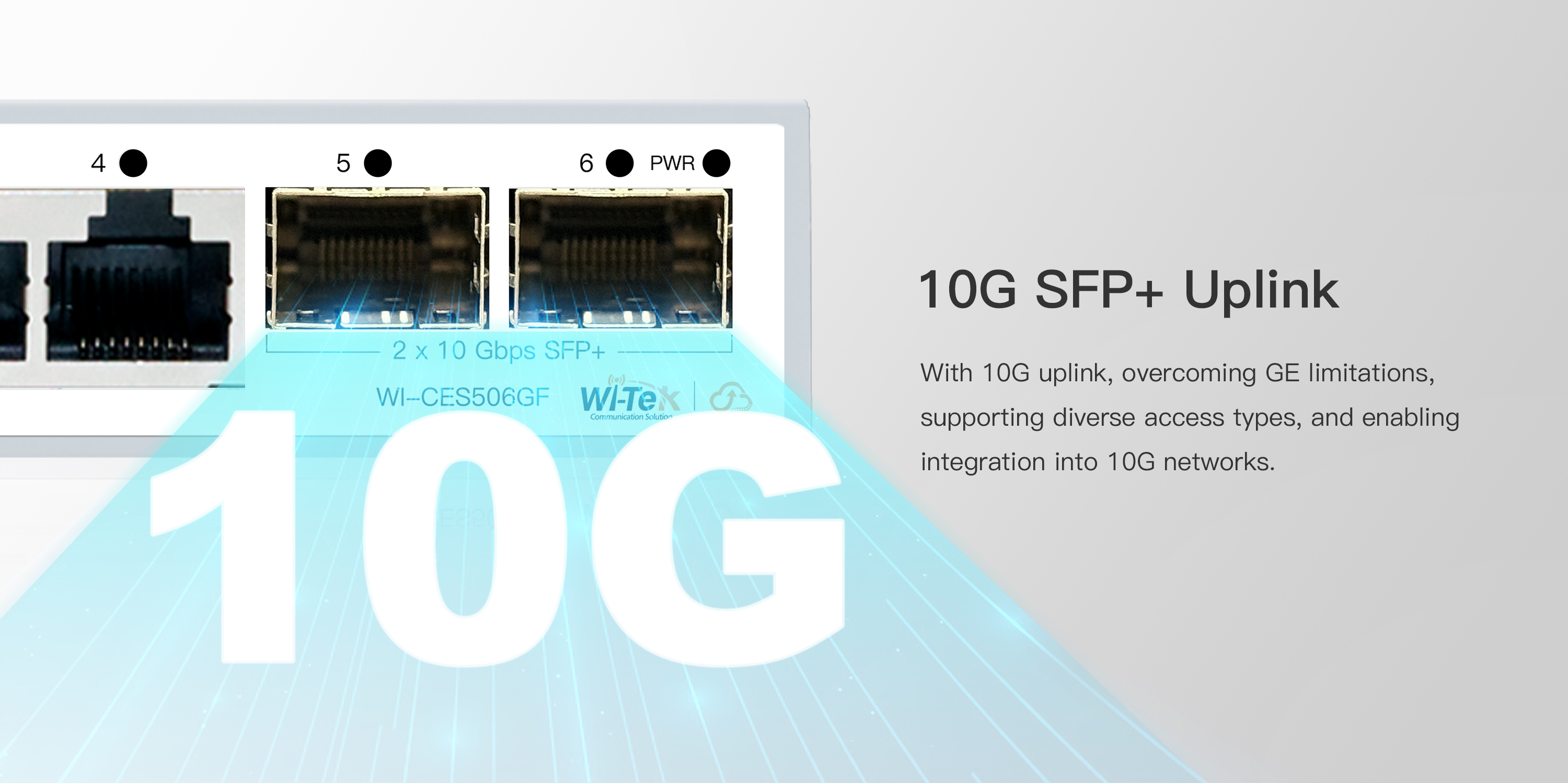● 4 10M/100M/1G/2.5Gbps Ethernet Ports, 2 1000M/2.5G/10Gbps SFP+ Slots