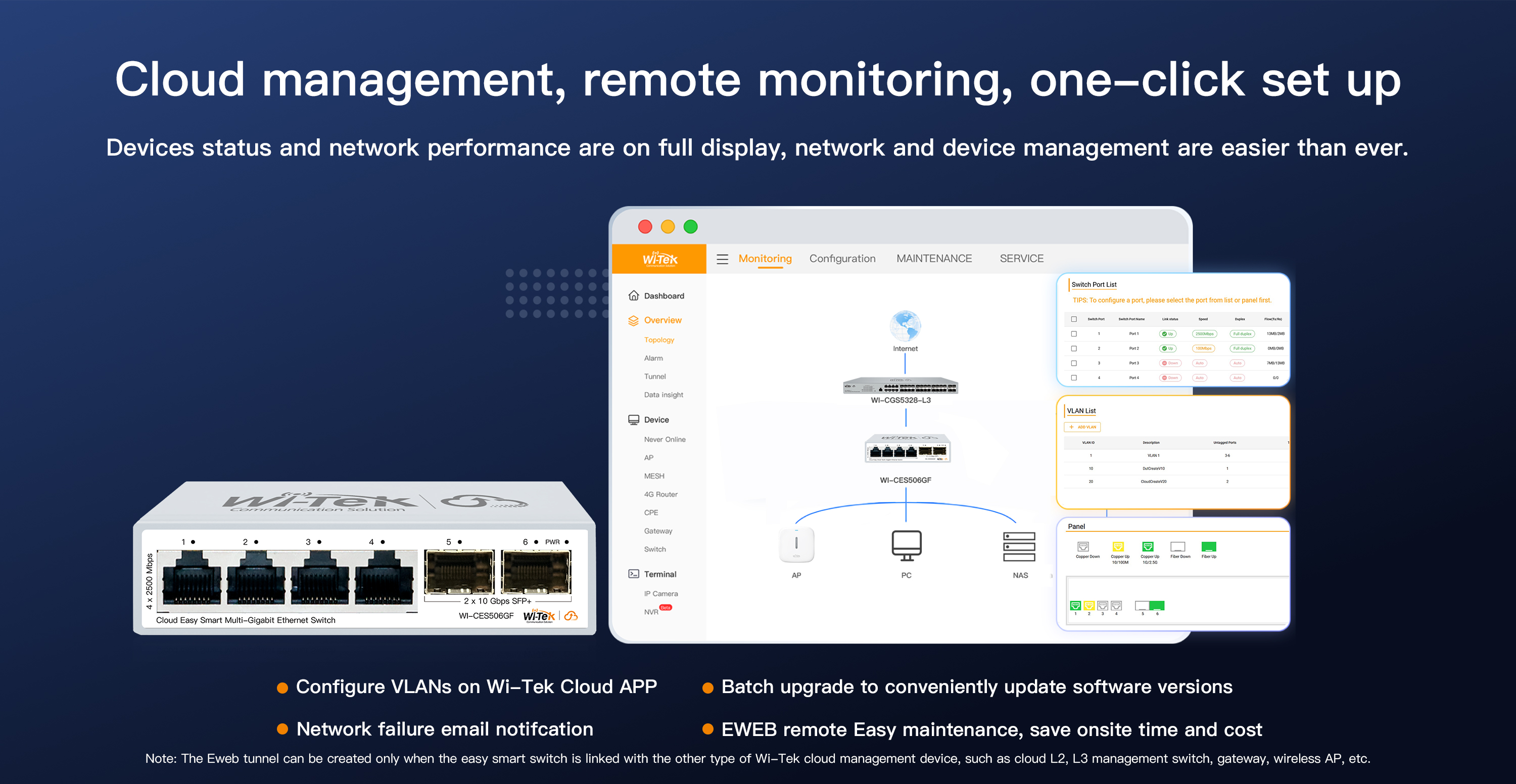 ● Support Wi-Tek Cloud management, mobile APP remote maintenance