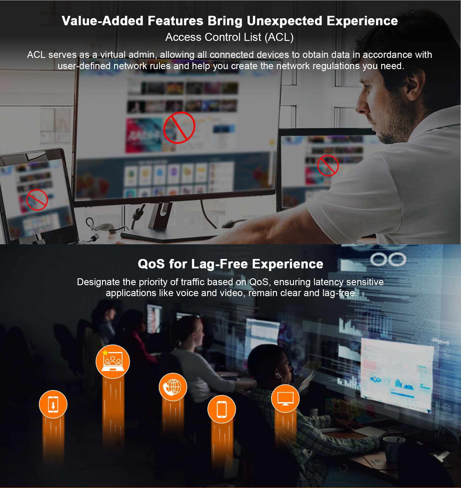 ● Support IGMP Snooping, Link Aggregation, and Loop Prevention